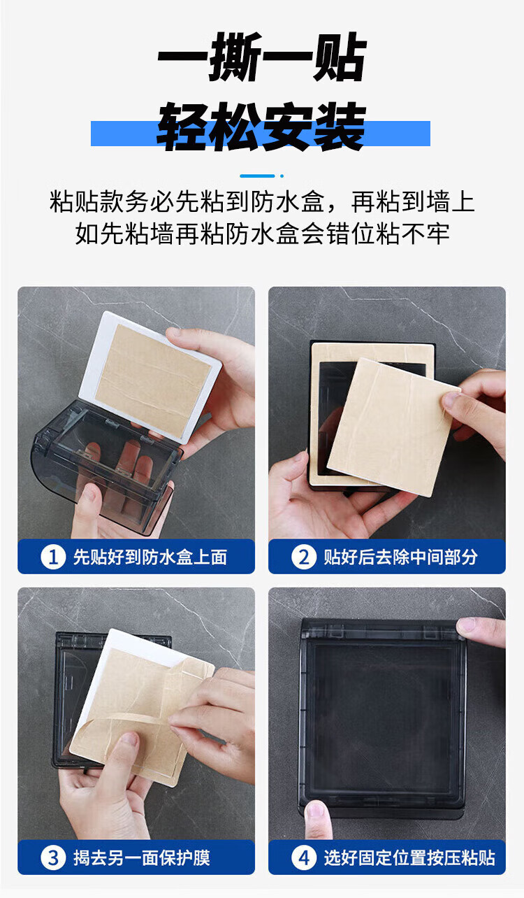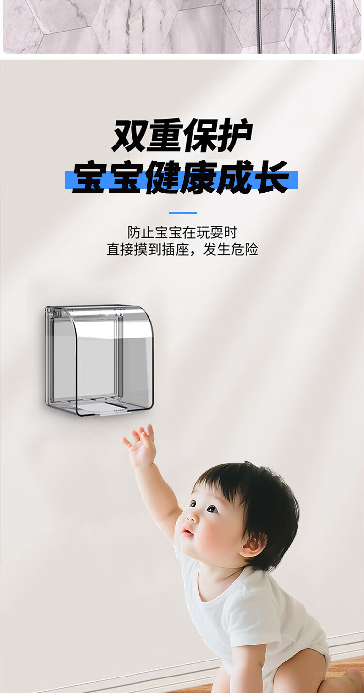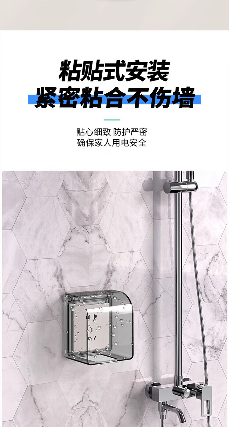 Type 86 socket waterproof cover self-adhesive switching power supply protective cover splash-proof box bathroom toilet socket protection box heightened waterproof box-transparent