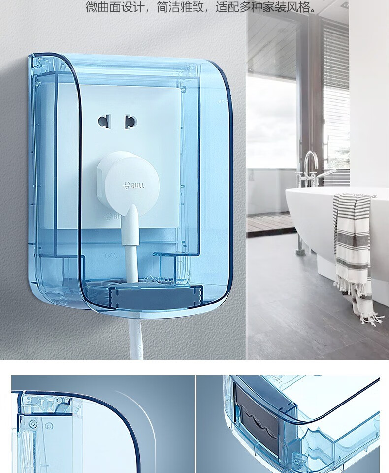 Bull socket waterproof box splash-proof protective cover bathroom smart toilet outdoor 86 type power socket exterior wall protective cover blue splash-proof box