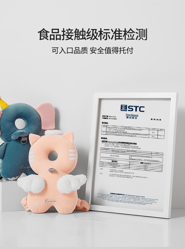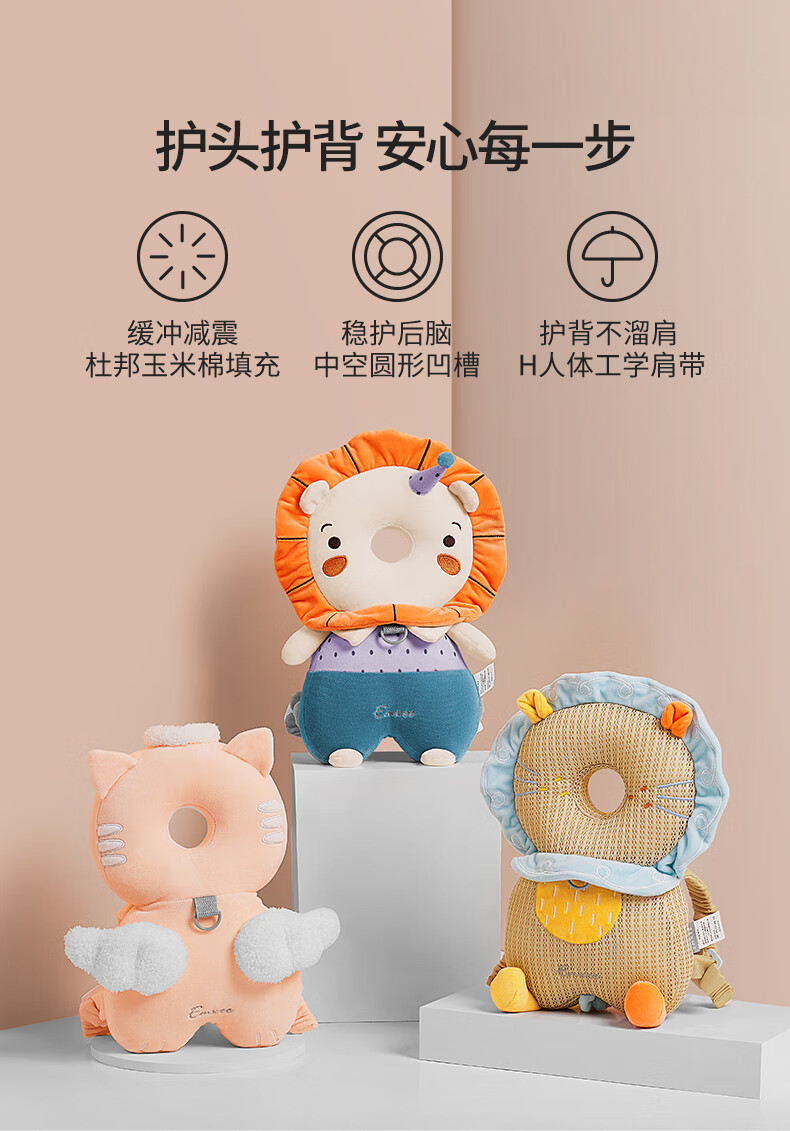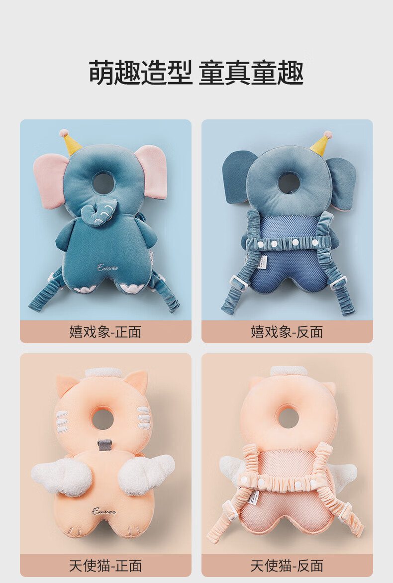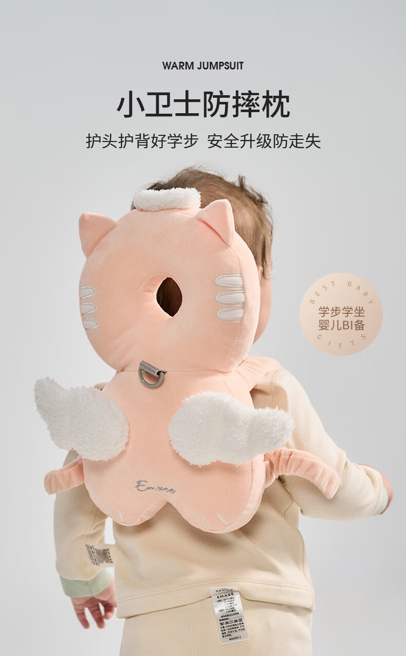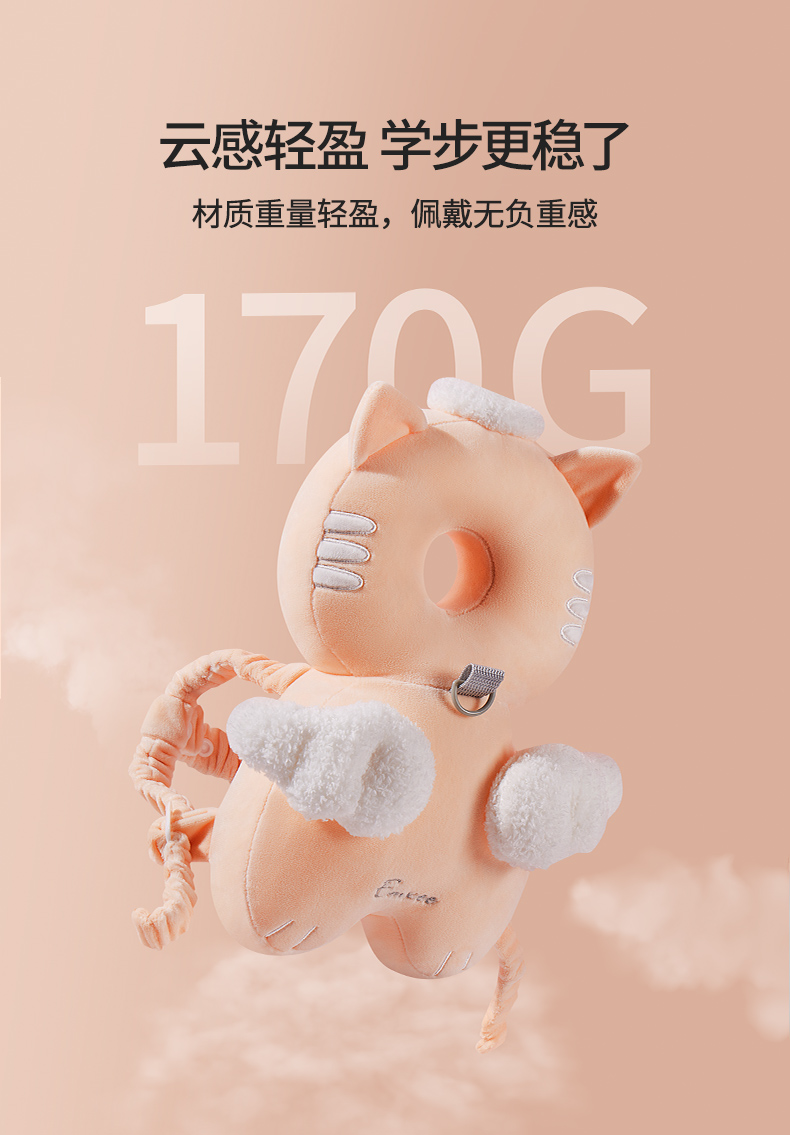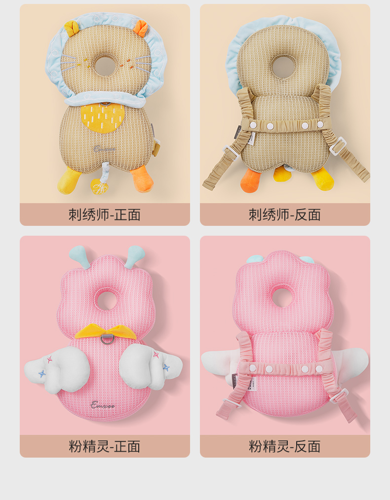 EMXEE Baby Anti-fall Pillow Learning to Walk Anti-collision Head Pad Breathable Angel Cat Honeycomb Shock Absorbing Mesh - Towable