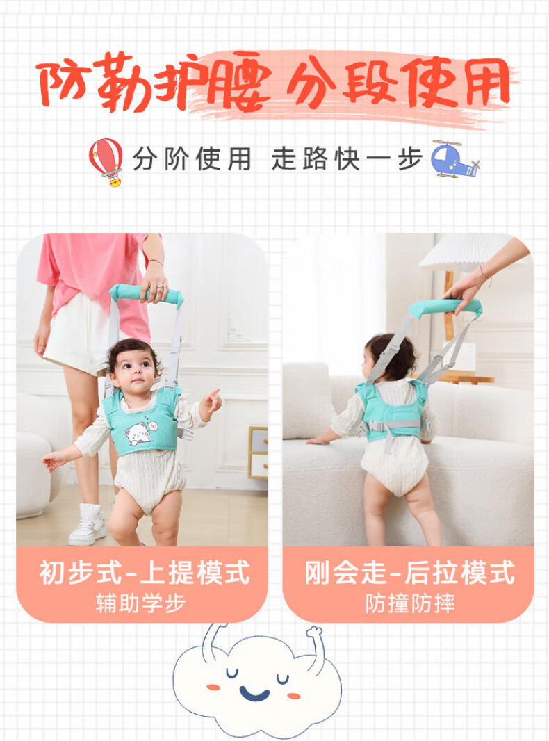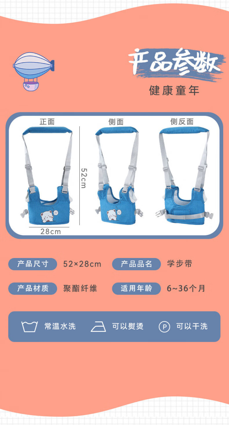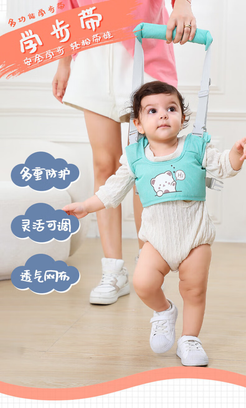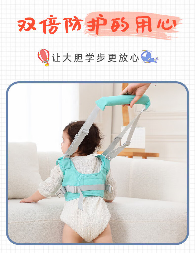 JCZS German brand toddler belt for infants and young children learning to walk, baby anti-fall toddler walking artifact, child anti-strangle waist protector, orthopedic doctor recommends maternal and infant grade imported Pakistani cotton blue