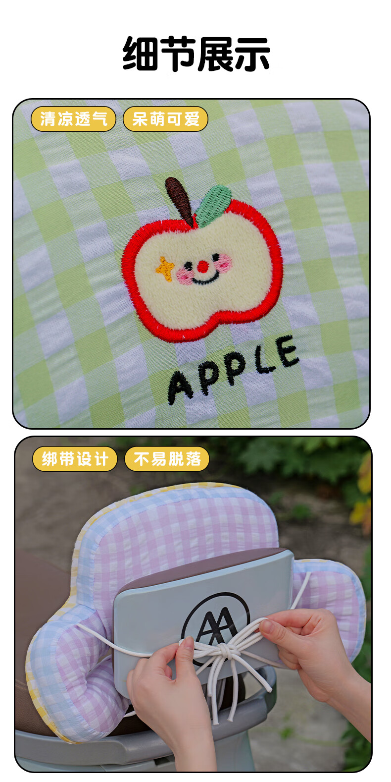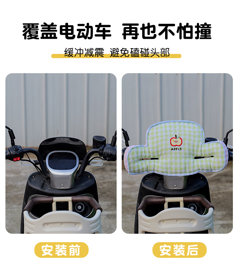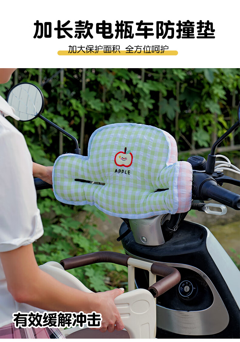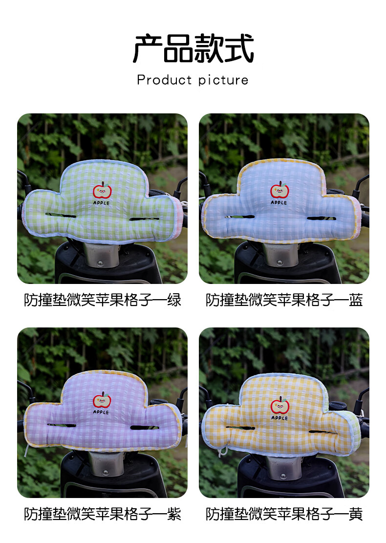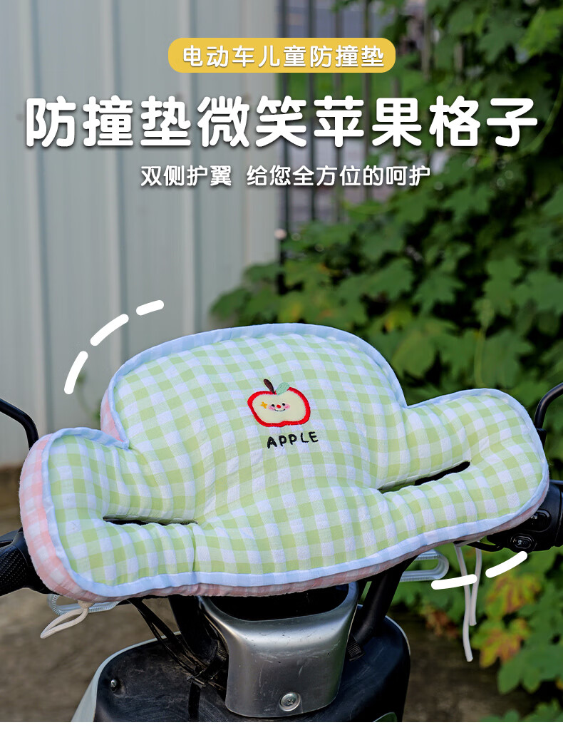 Baby anti-collision head pad, anti-collision artifact, children's tram front pad, soft bag protection pad, back cushion, multi-functional pillow cushion, Smiling Apple Plaid-Green 43x23cm/1 piece