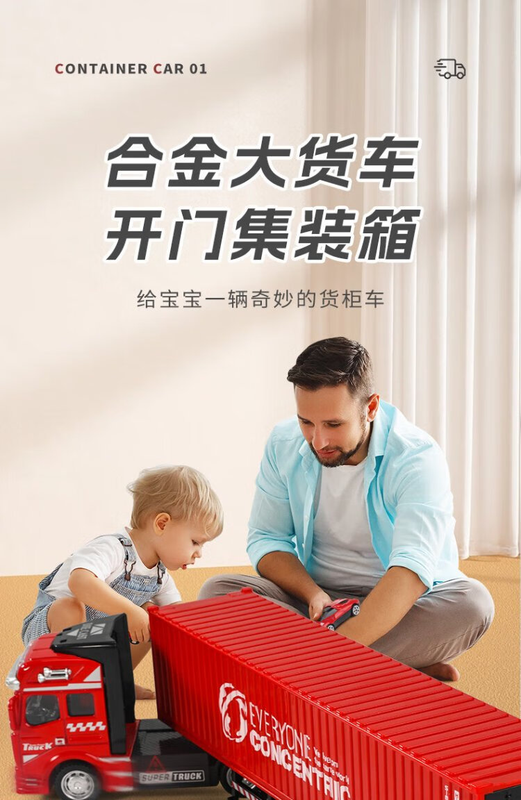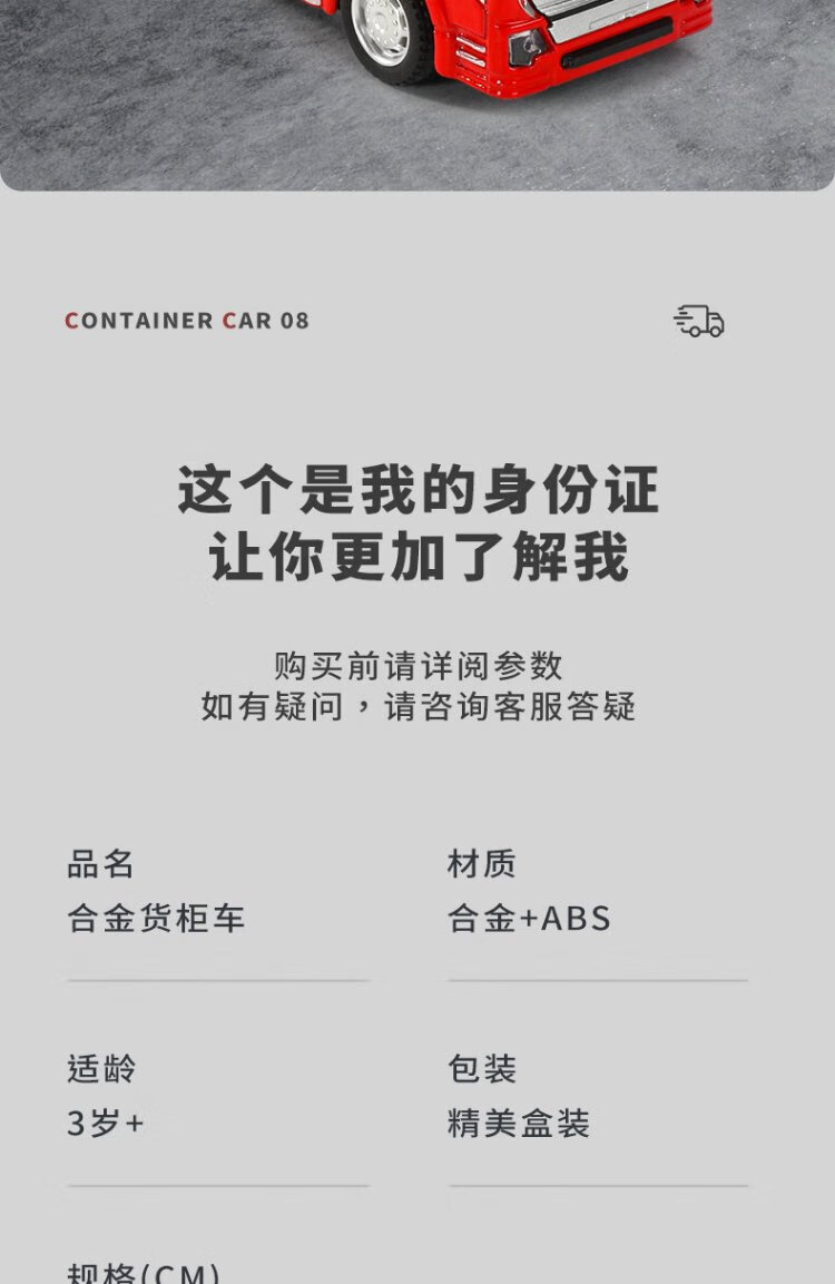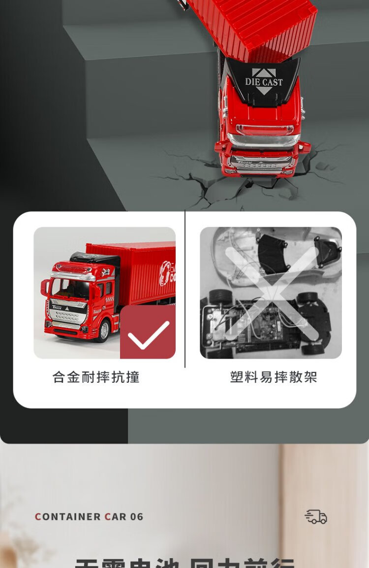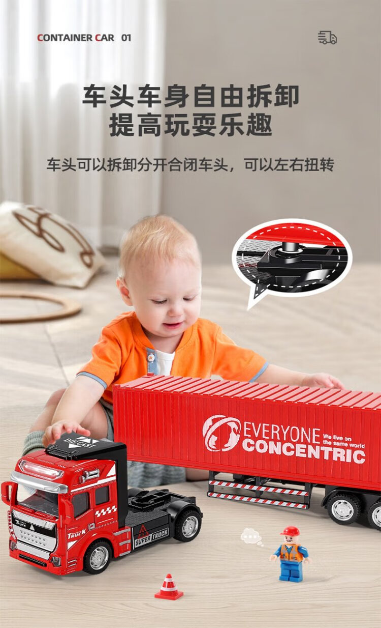 Enbe family children's toy car 3-6 year old boy large alloy container truck engineering vehicle simulation car model birthday gift