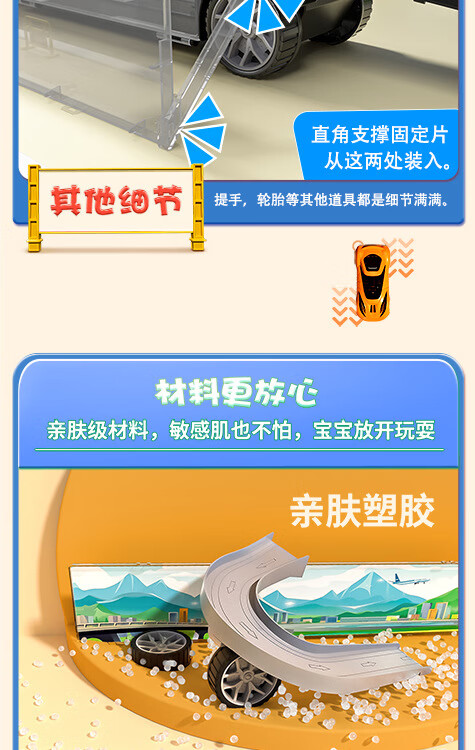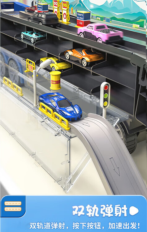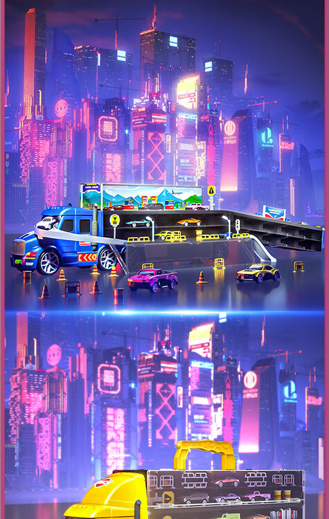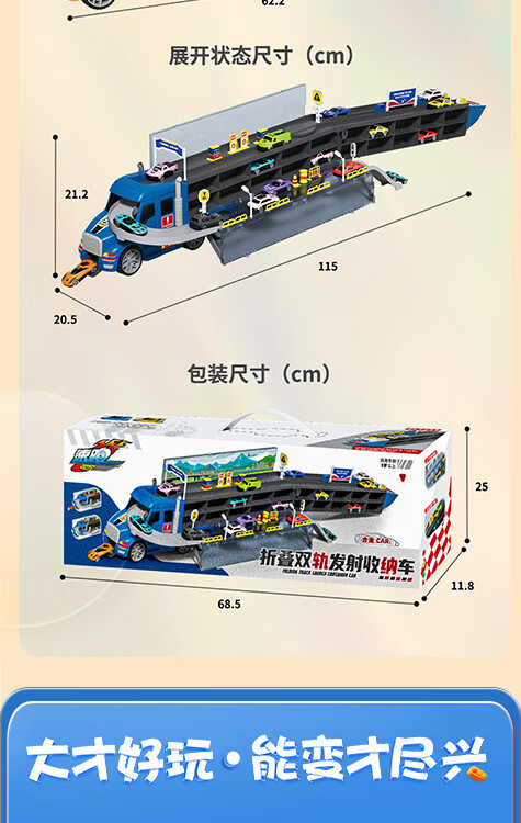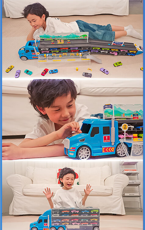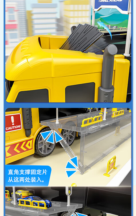 Jingjia Ejection Folding Truck Toy Children's Large Container Truck Transformable Large Truck Storage Dual Track Alloy Car Folding Ejection Container Truck - Yellow Comes with 20 Vehicles