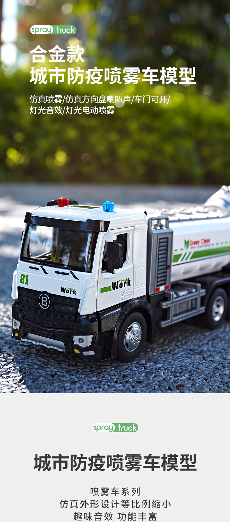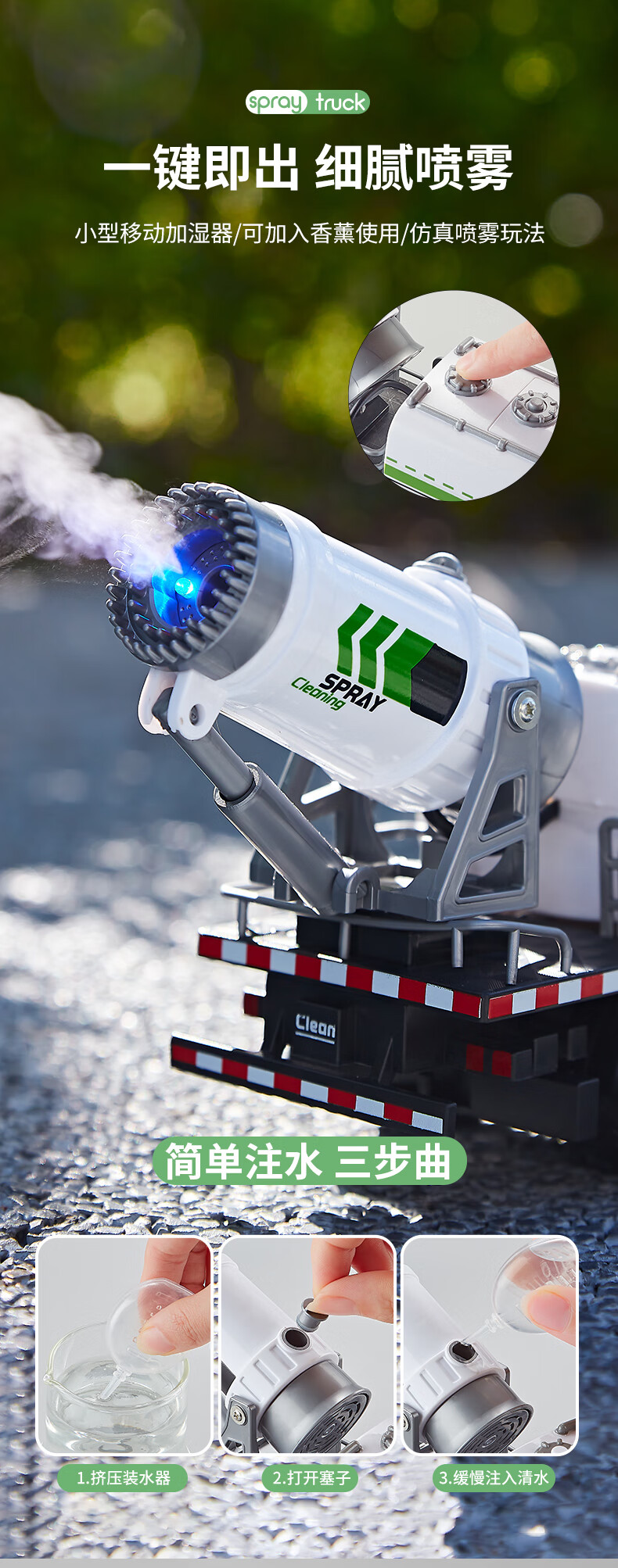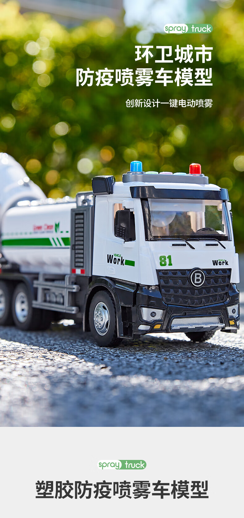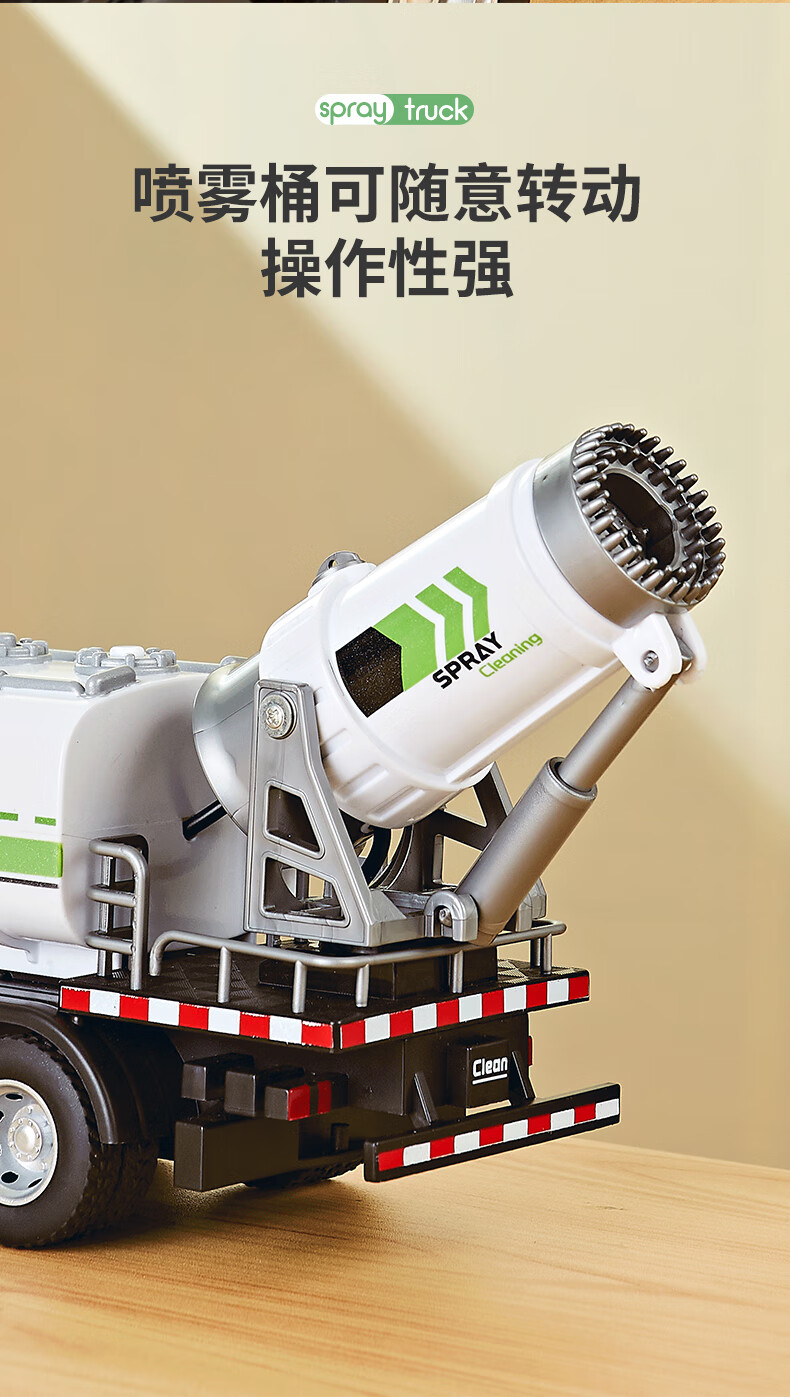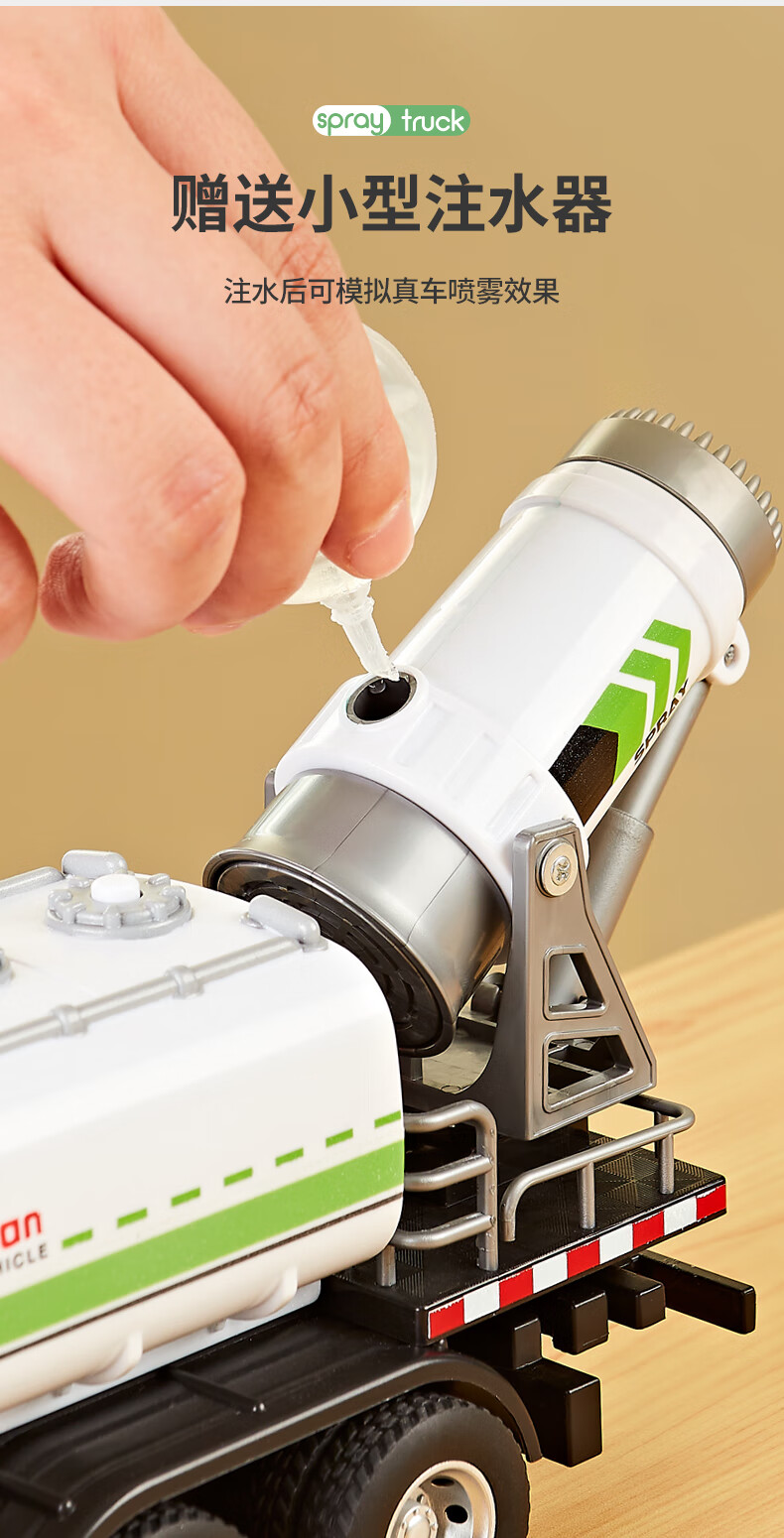 Spray truck, water sprinkler, alloy car, toy, children's road sweeper, fog cannon, epidemic prevention and disinfection car, boy's fog cannon truck, alloy model, oversized engineering excavator (excavator
