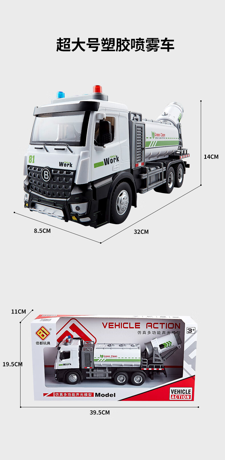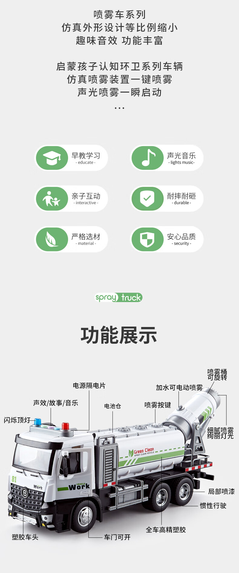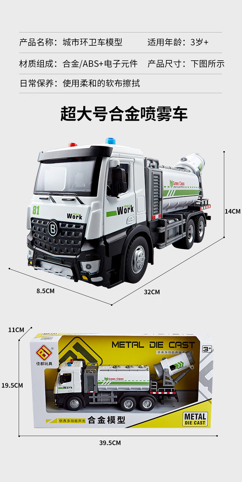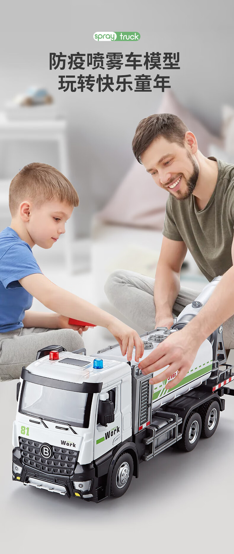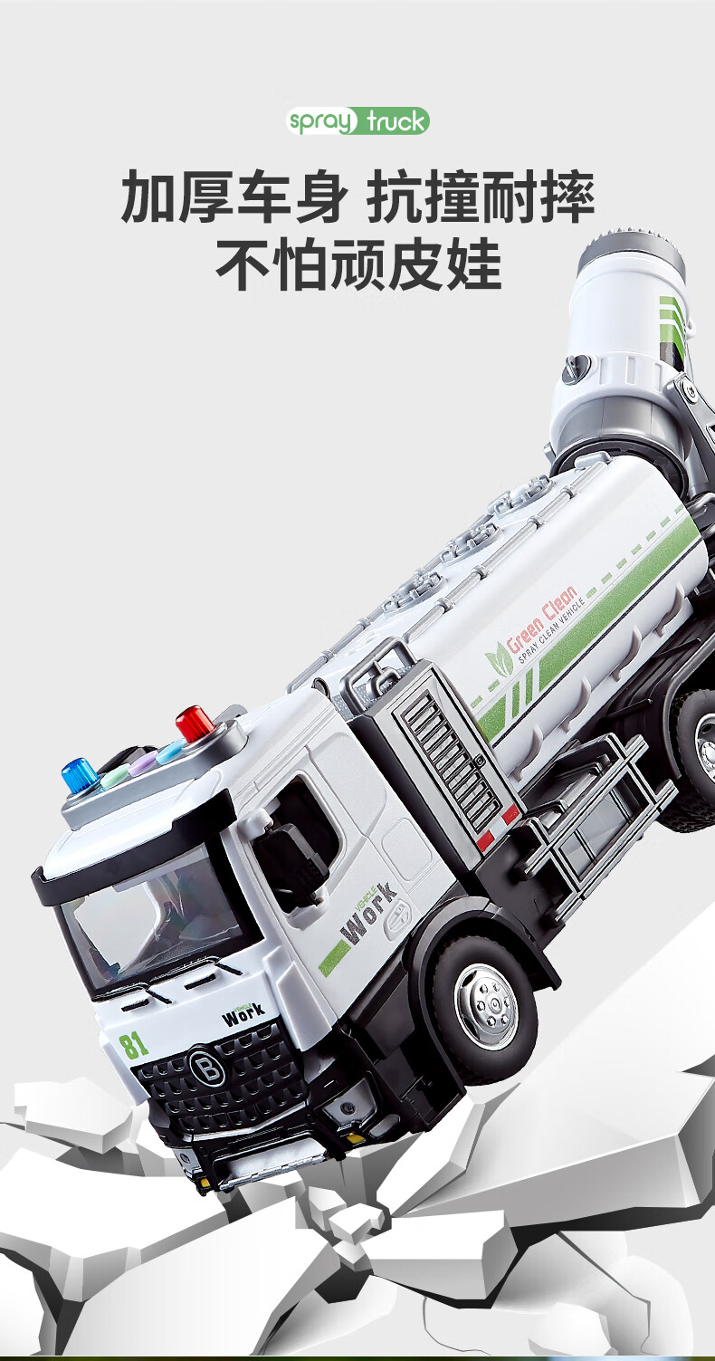 Spray truck, water sprinkler, alloy car, toy, children's road sweeper, fog cannon, epidemic prevention and disinfection car, boy's fog cannon truck, alloy model, oversized engineering excavator (excavator