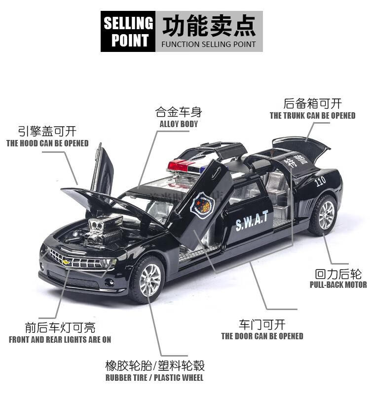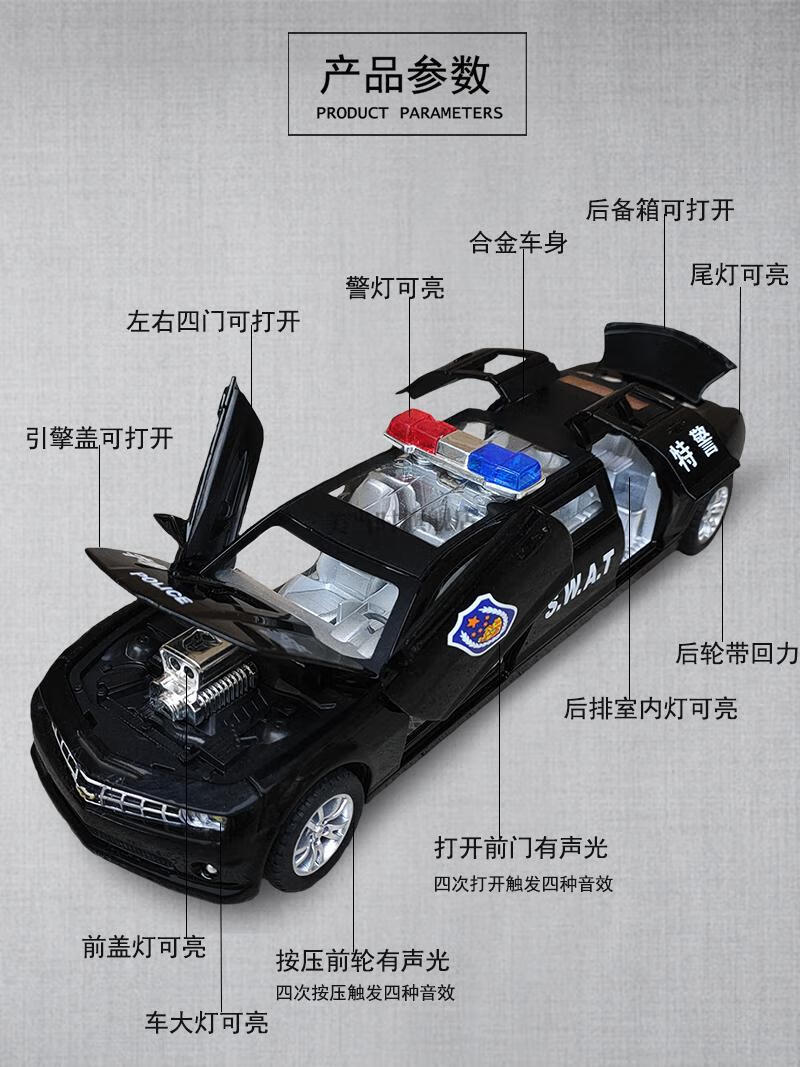 Chuangjingyixuan Remote Control Excavator Three-in-One Children's Police Car Toy Extended Alloy Simulation Chevrolet Special Police Public Security Car Model Large Mercedes-Benz Big G Police Car-Black (Doll Battery Fire/Police Car/Ambulance