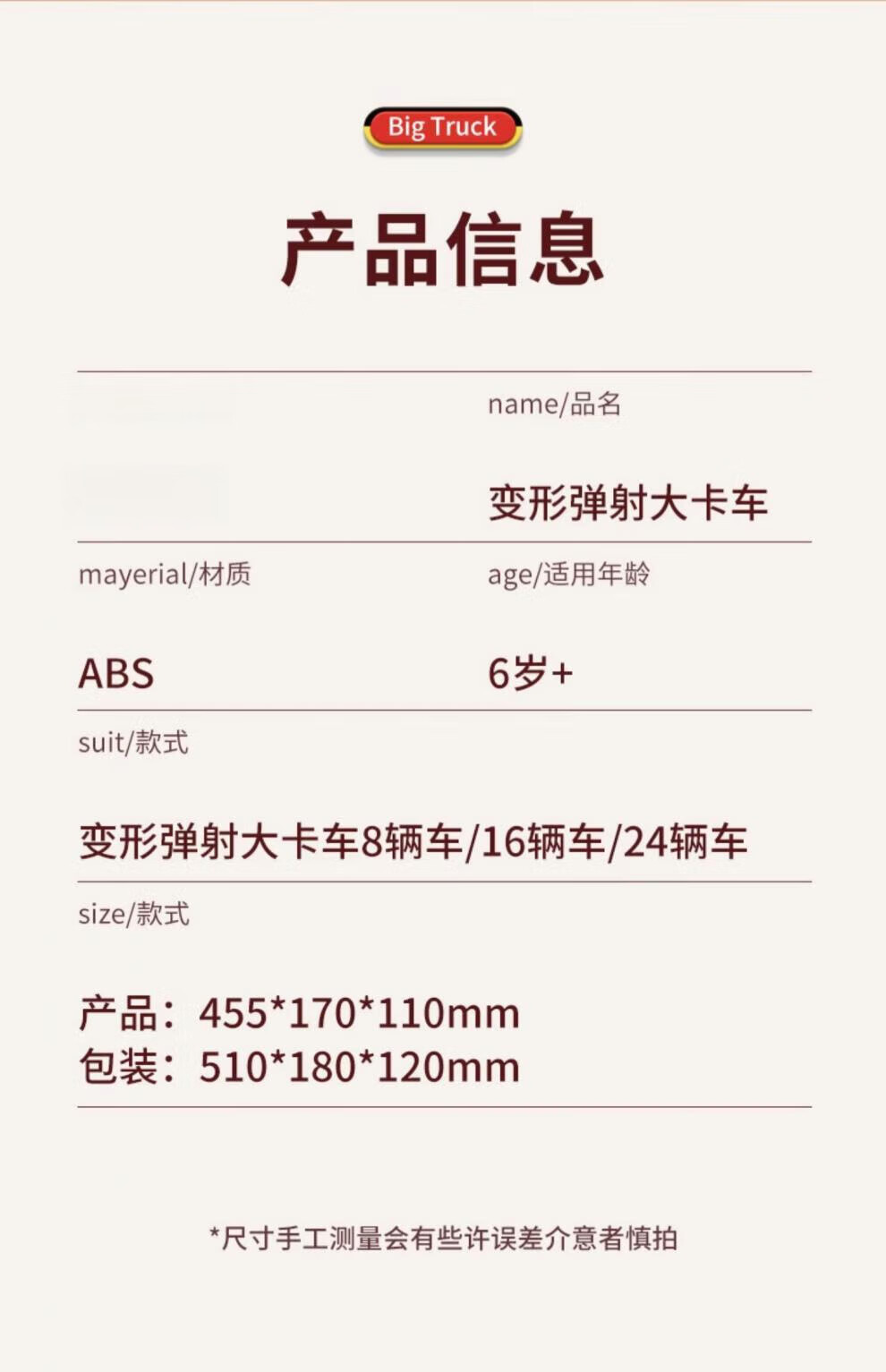 UOSO Children's Birthday Gift Alloy Engineering Vehicle Transformation Large Truck Track Ejection Car 6 Boys Toy 3 Years Old Large Size Transformation Ejection Large Truck 8 Alloy Cars