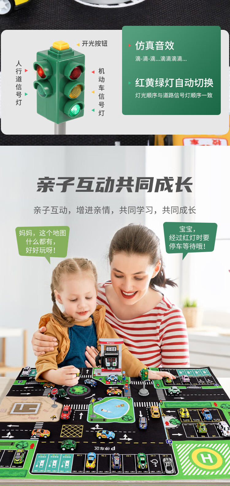 BABYMABO Children's Alloy Car Toy City Track Map Parking Lot Crawling Mat Basic Set Alloy Car 12 Pack_+City