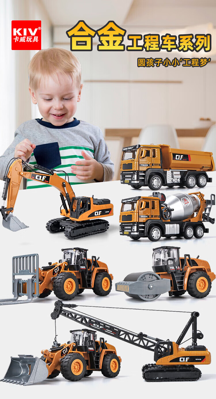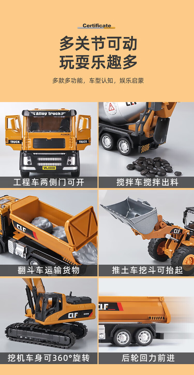 JPHZNB Engineering Vehicle Toy Set Children's Car Alloy Excavator Toy Car Boy Mixer Truck Excavator Special Offer Five Packs Free 3 Batteries 6 Figures + Accessories