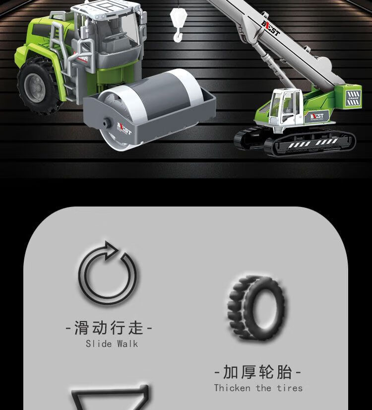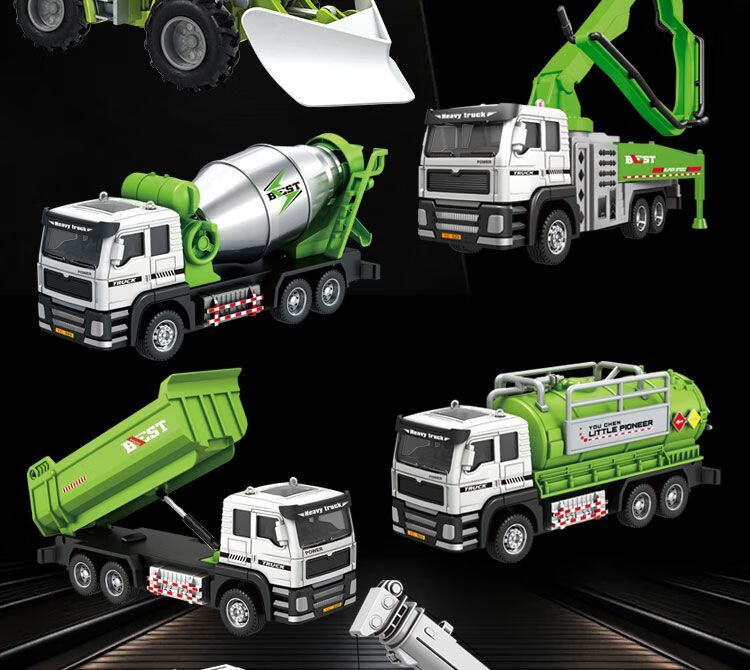 Kari Shark Alloy Engineering Vehicle Excavator Snow Plow Toy Boy Set Simulation Children's Model Crane Mixer Truck Crane Green Luxury Alloy Combination Engineering Vehicle 12 Models