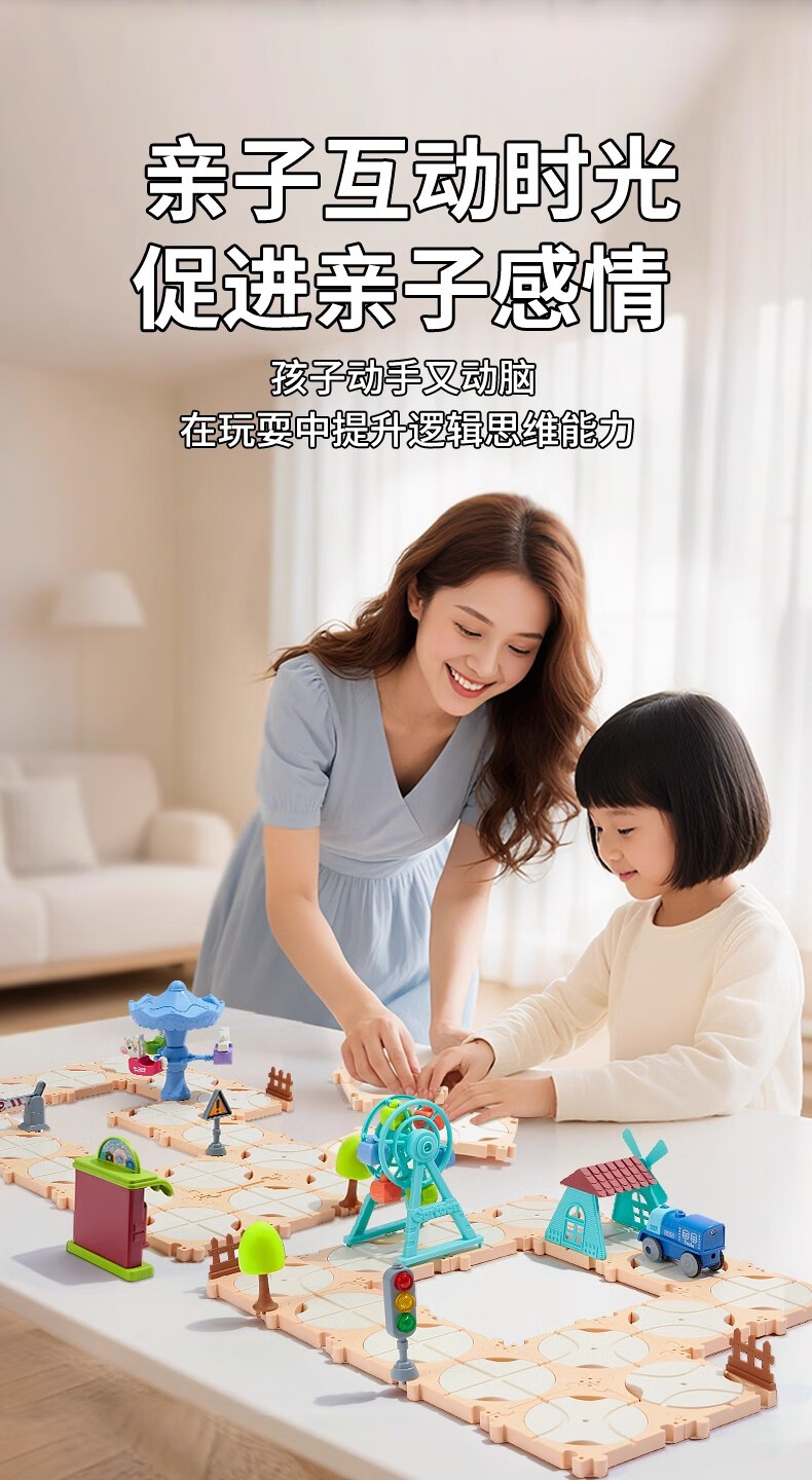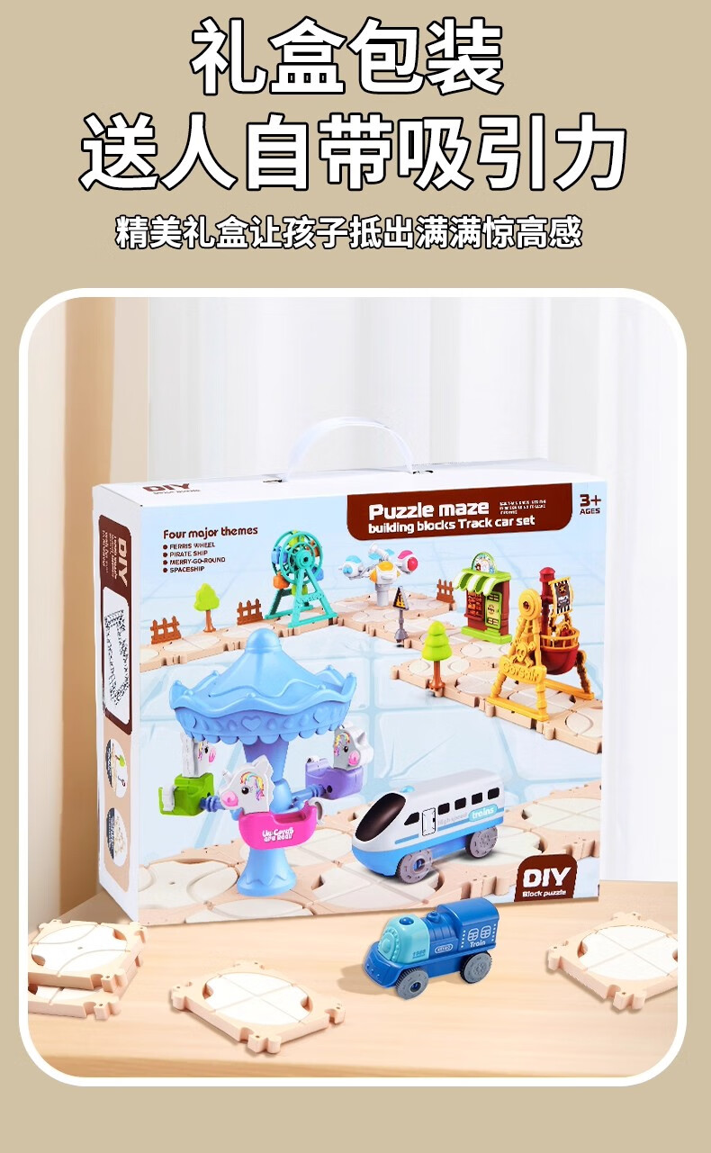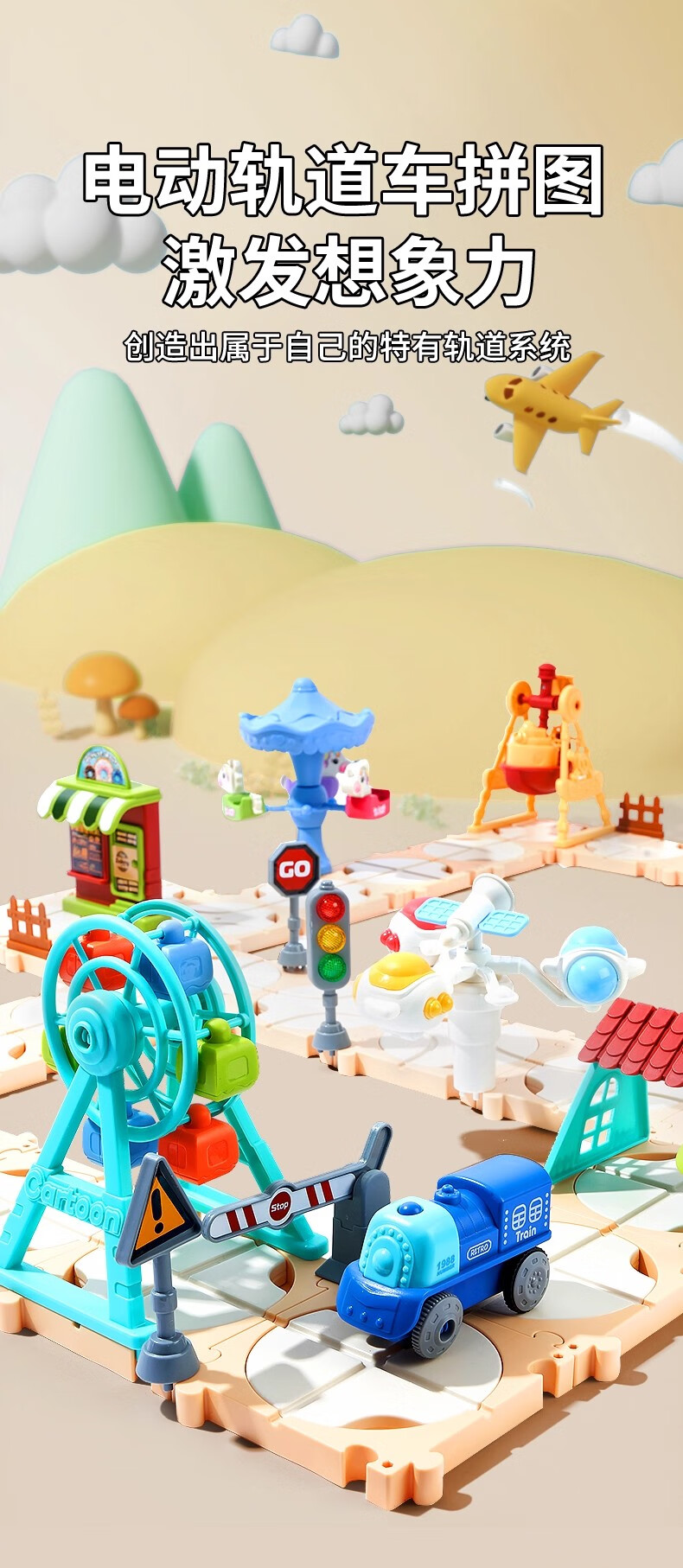DADDY GUARD Children's Electric Rail Car DIY Castle Girls 1-3-6 Years Old Puzzle Brain Maze Train Toy 4 Major Theme Models 125 Pieces Accessories + DIY Puzzle Rail Running Car