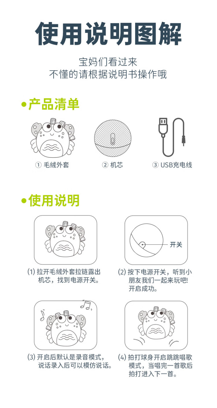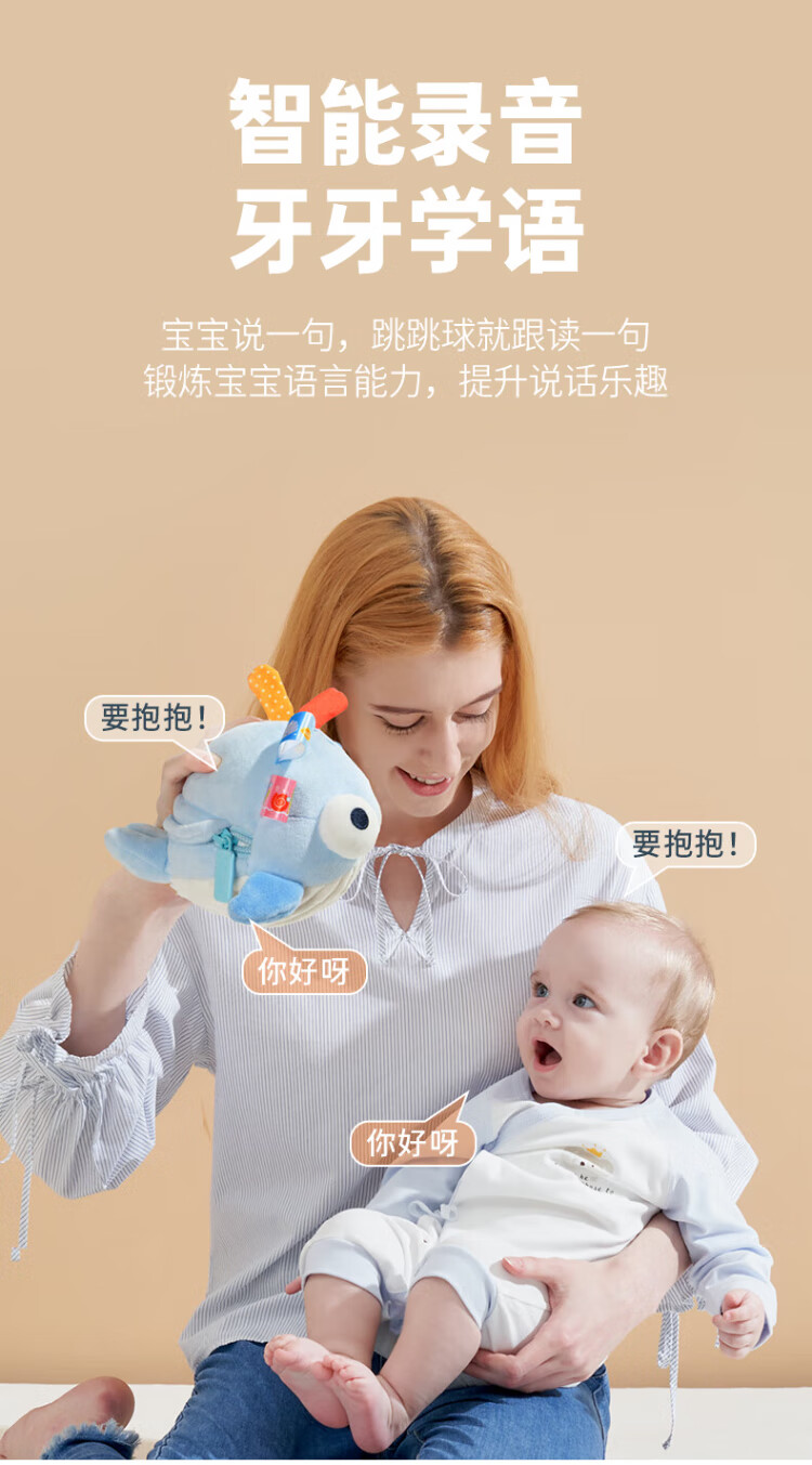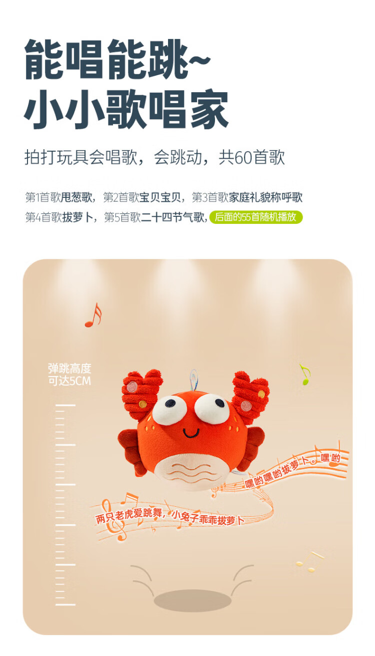 jollybaby音乐跳跳球宝宝哄娃神器儿童复读学说话会唱歌婴儿玩具螃蟹
