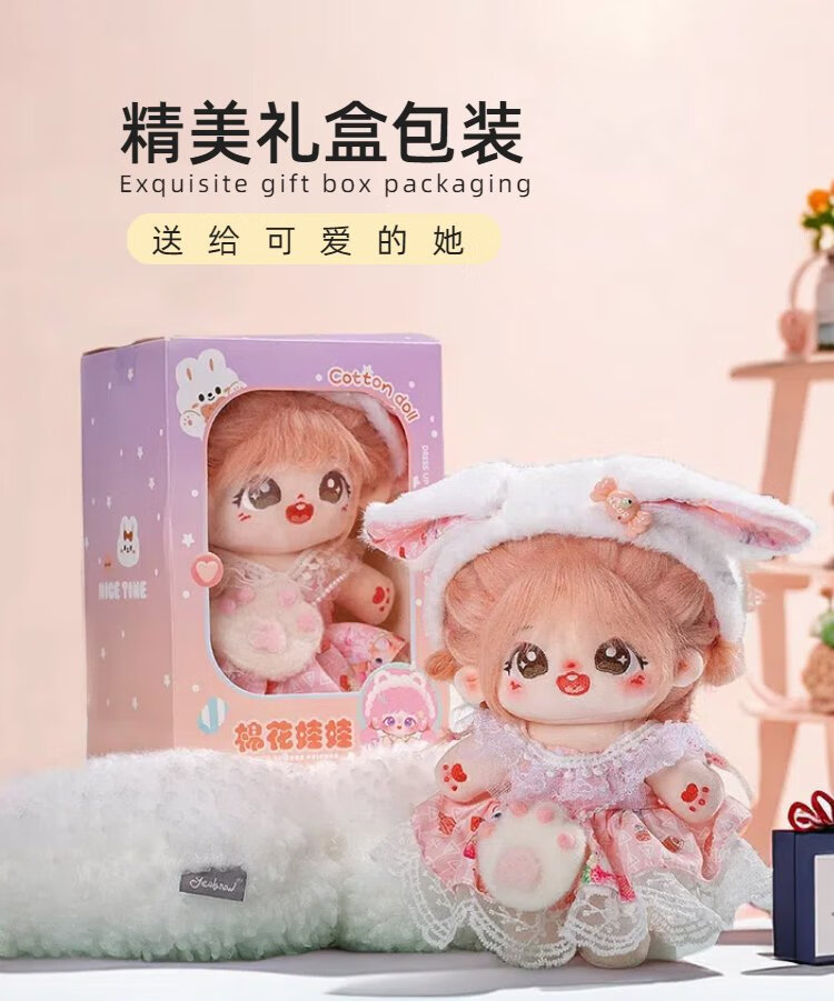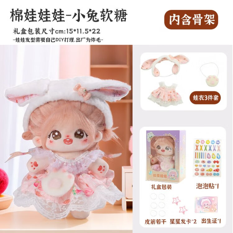 Princess Anna Cotton Doll 20cm Fried Hair Genuine Changeable Doll with Skeleton Cute Plush Doll Gift Box for Girls
