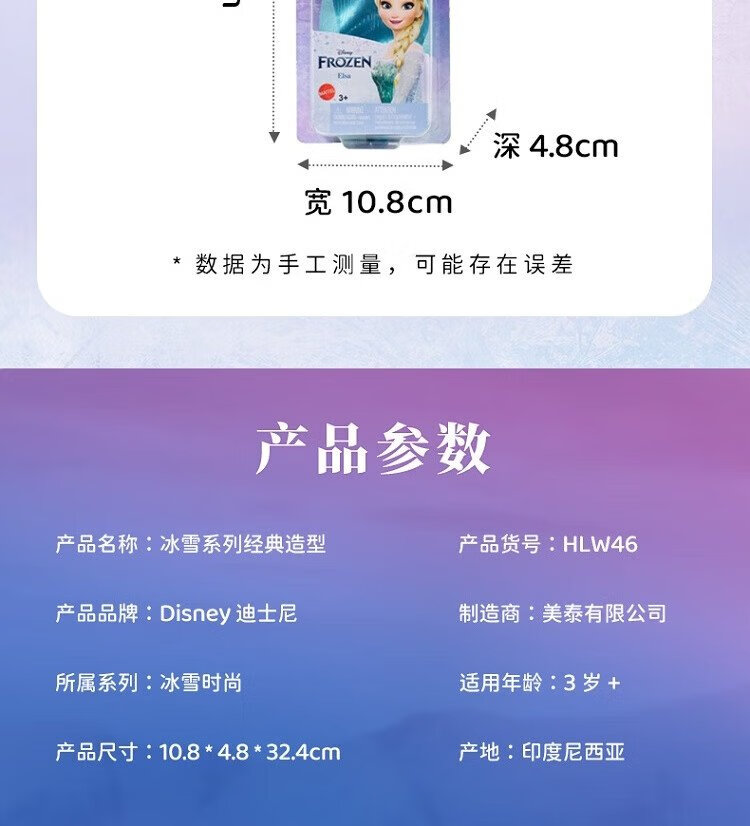 芭比(Barbie)女孩儿童玩具生日礼物公主娃娃-冰雪奇缘1艾莎公主娃娃HLW47