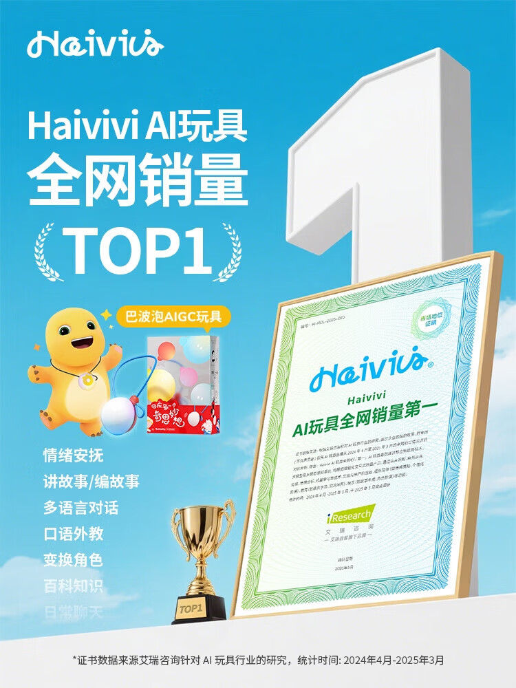 Haivivi BubblePal AIGC intelligent conversation toy early education interactive story machine birthday gift sky blue a doll