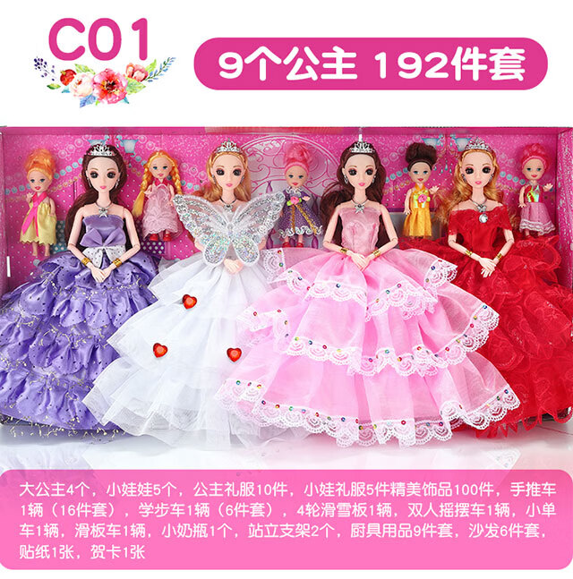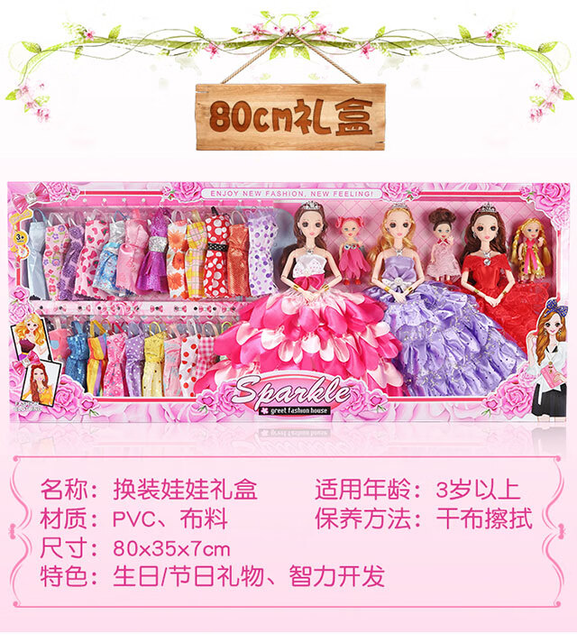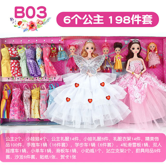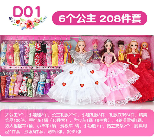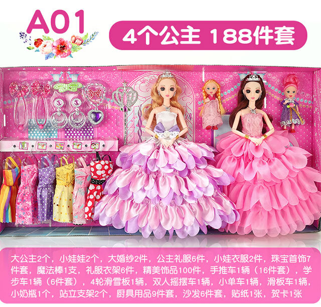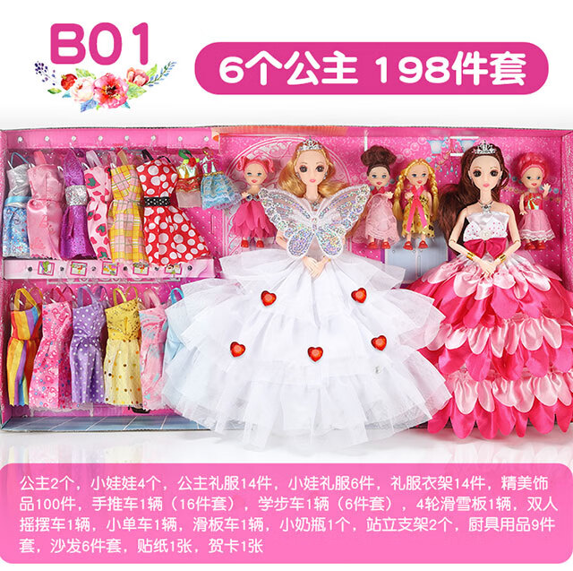 Haole Shuangyang Girls Dress Up Doll Set Big Gift Box House Toy Princess Girls Play House Birthday Gift Villa Store Four Dolls with 62 Products Va
