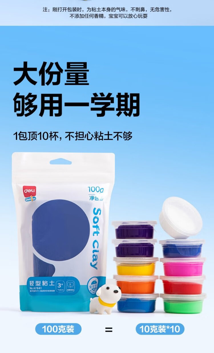 Deli (deli) 100g large package ultra-light clay toys toddlers beach colored clay plasticine clay DIY art handicraft materials children's school stationery birthday gift green