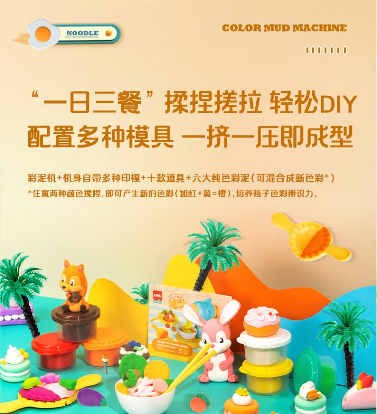 Deli Clay Noodle Maker Set Plasticine Clay Handmade DIY Clay Clay Fun Toys Gifts for Boys and Girls Children’s Stationery Birthday and School Gifts