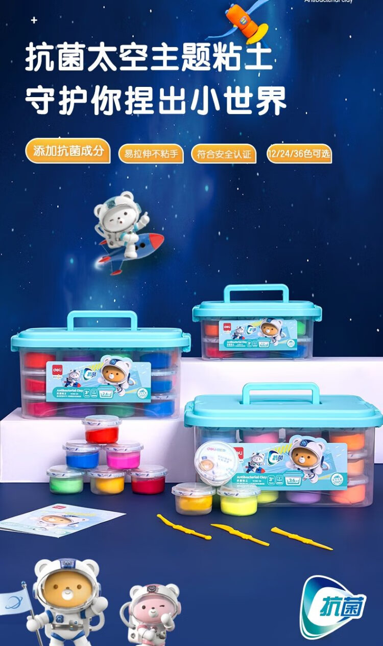 Deli 12-color ultra-light clay colored clay plasticine DIY handmade toys antibacterial clay boxed easy to store birthday boys girls children school stationery gifts