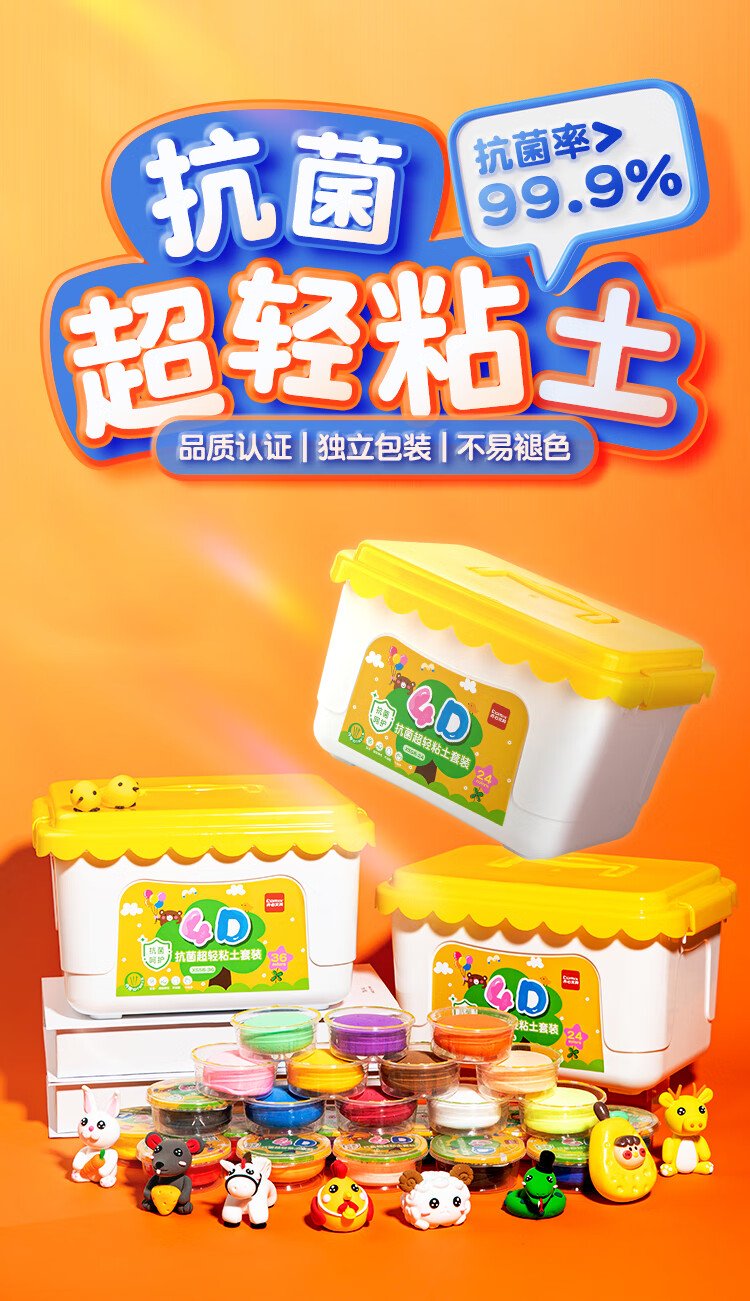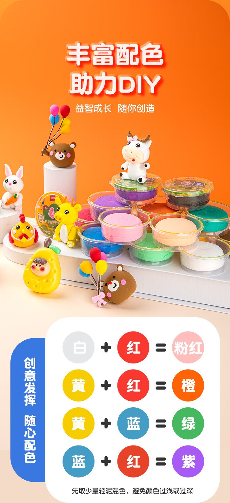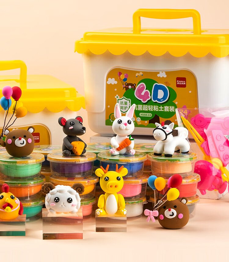 Comix Antibacterial Bucket Ultra-Light Clay 24 Colors Children's Day Back to School Gift Toys Soft Clay Colored Clay Plasticine Handmade DIY Art XSS8-24