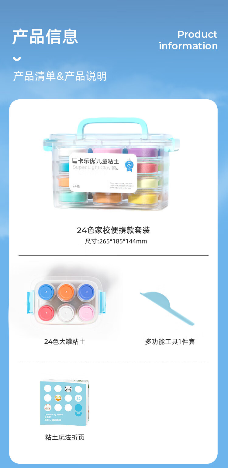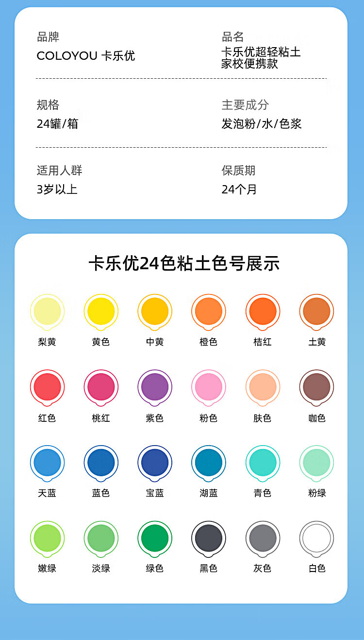 Coloyou 24-color ultra-light clay non-toxic transparent box clay home-school portable colored clay plasticine safe baby handmade DIY children's boys and girls birthday gift toys without fluorescent agent