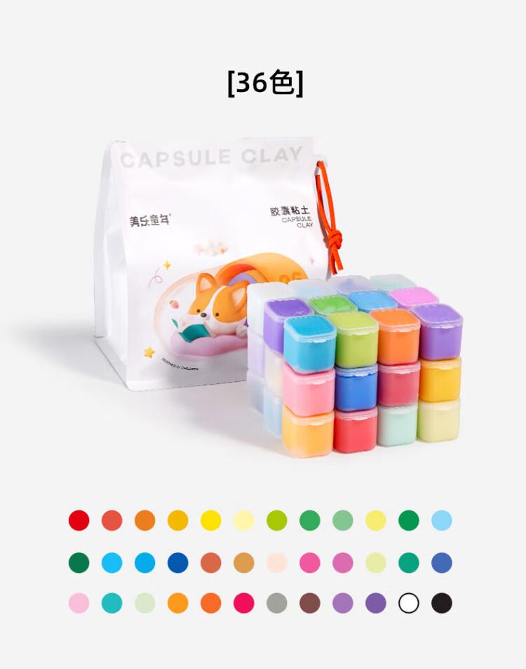 Meile Childhood Capsule Clay Ultra-Light Clay 36 Color Children's Colored Clay Handmade DIY Non-Toxic Antibacterial Kindergarten Special Baby Toy Gift Non-stick Clay Safety Plasticine Set