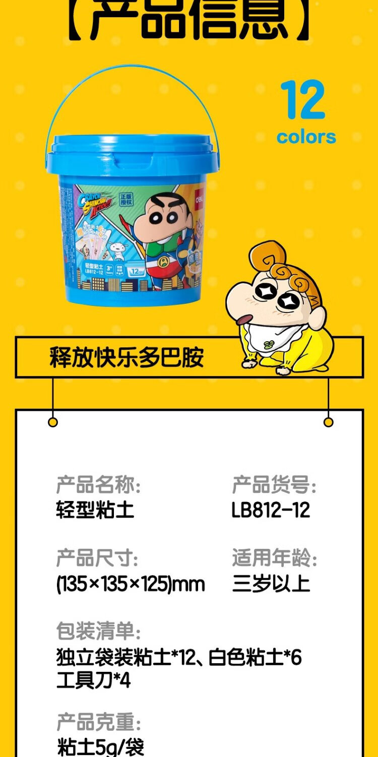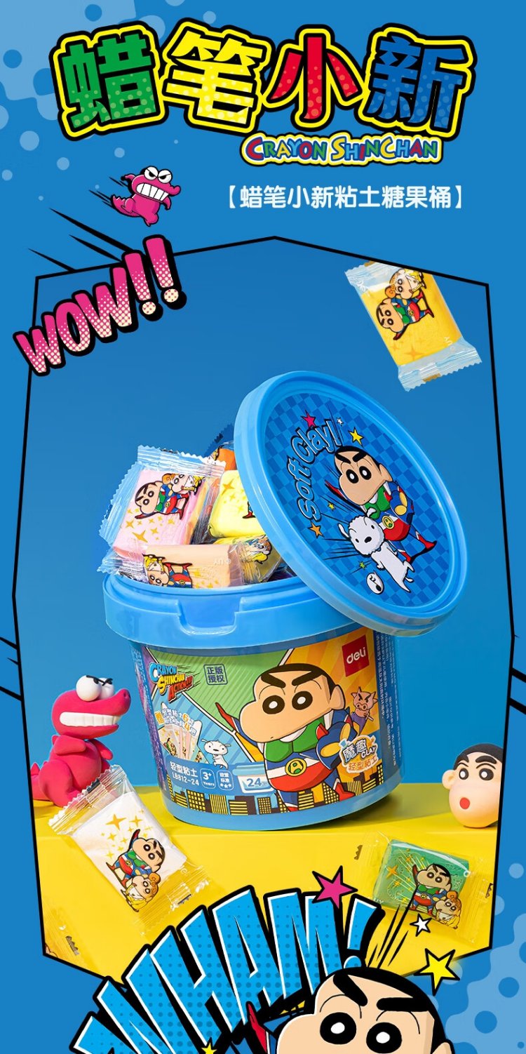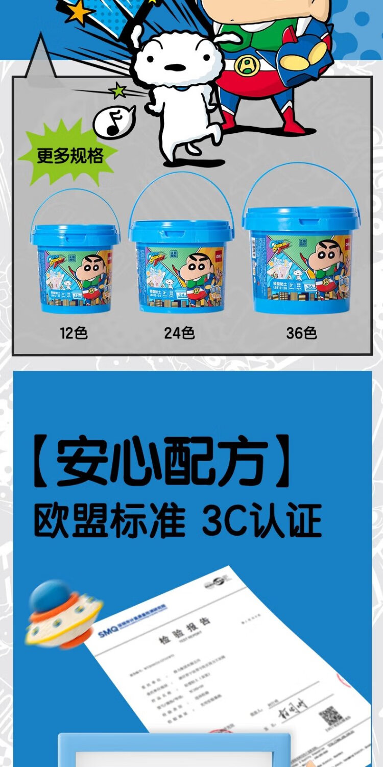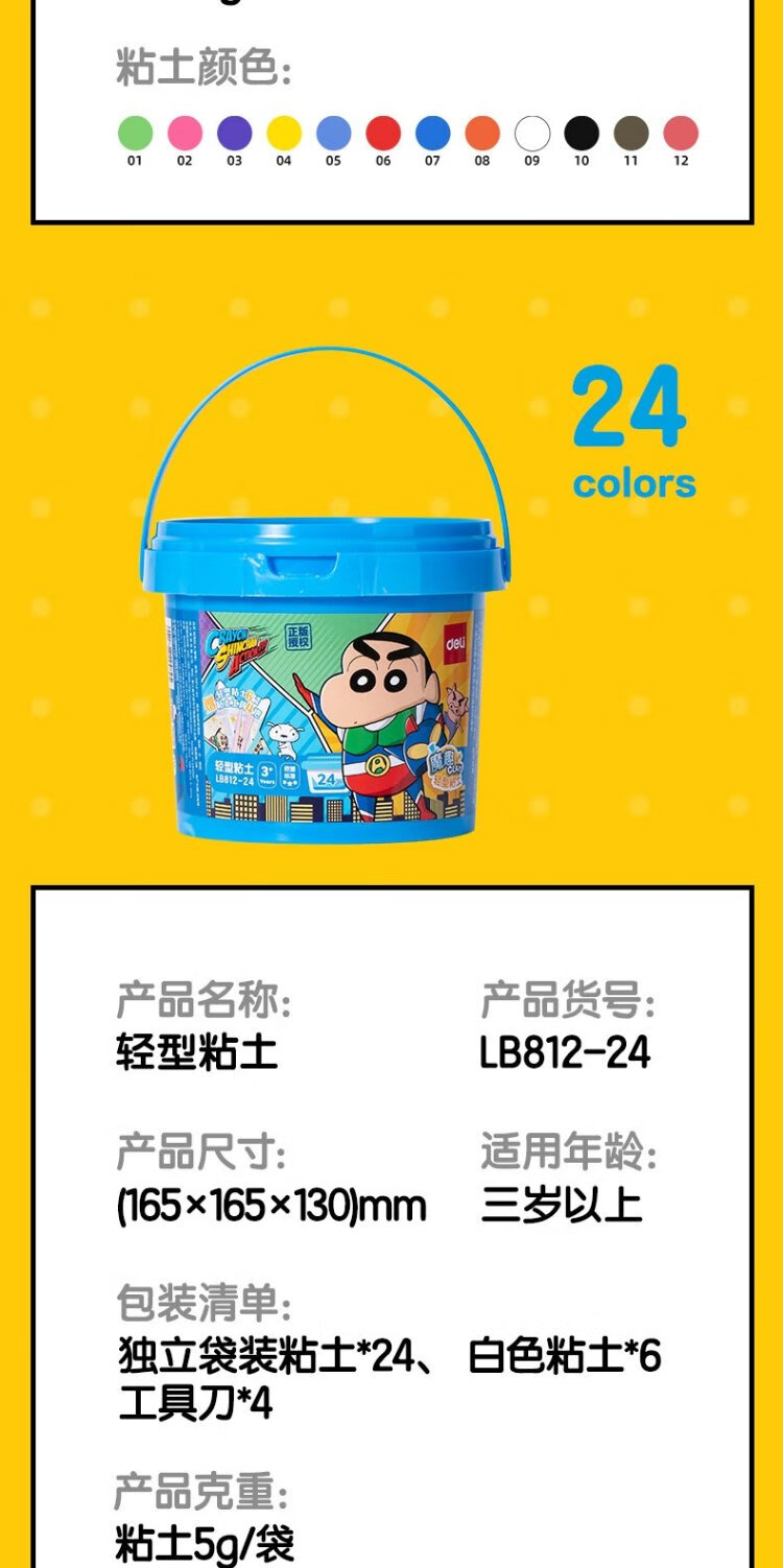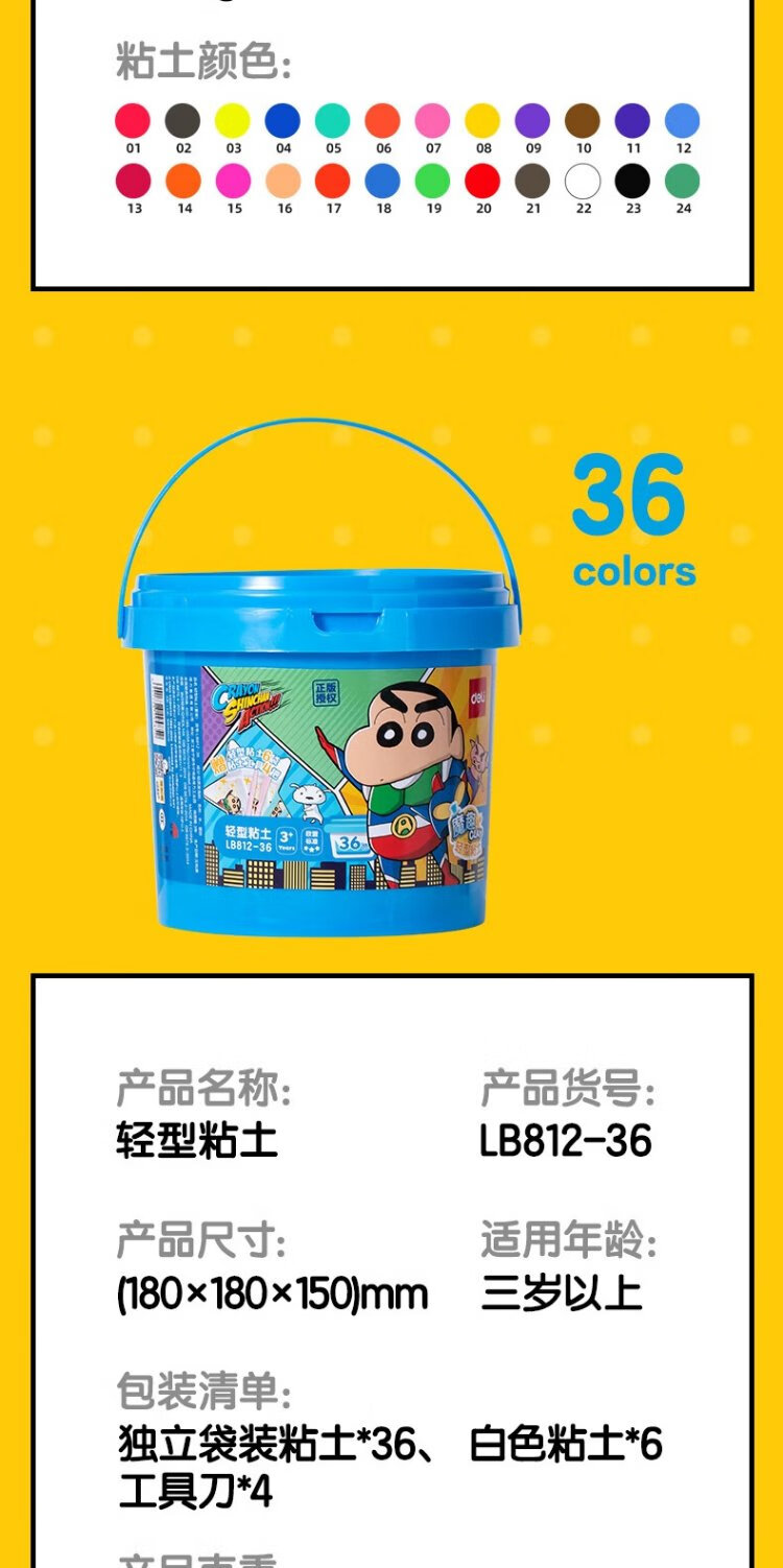 Deli Crayon Shin-chan 36 colors plus 6 packs of ultra-light clay, clay, plasticine and colored mud for kindergarten students DIY handmade toy bucket children's birthday gift