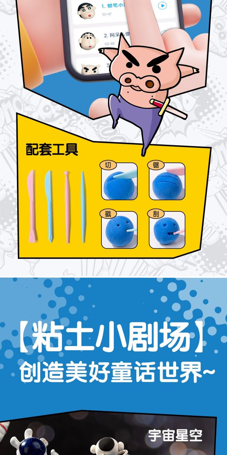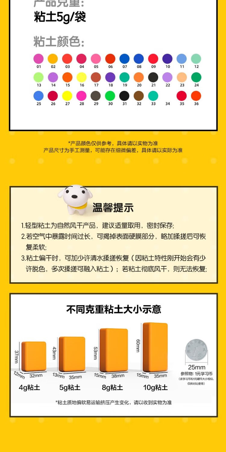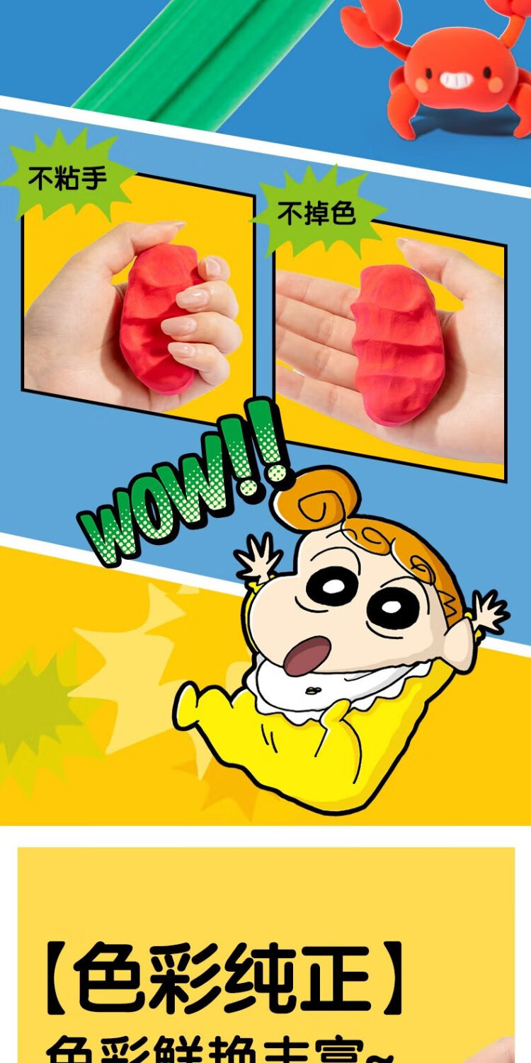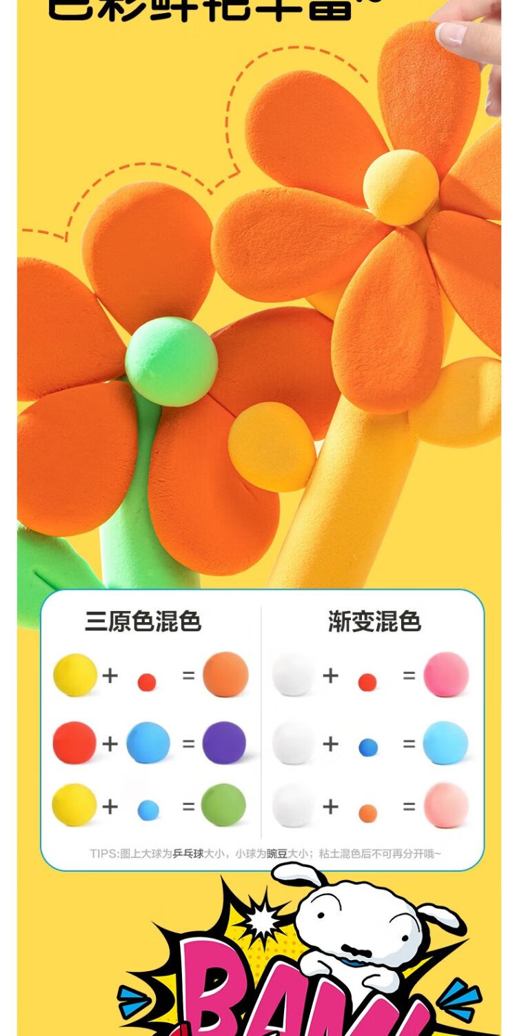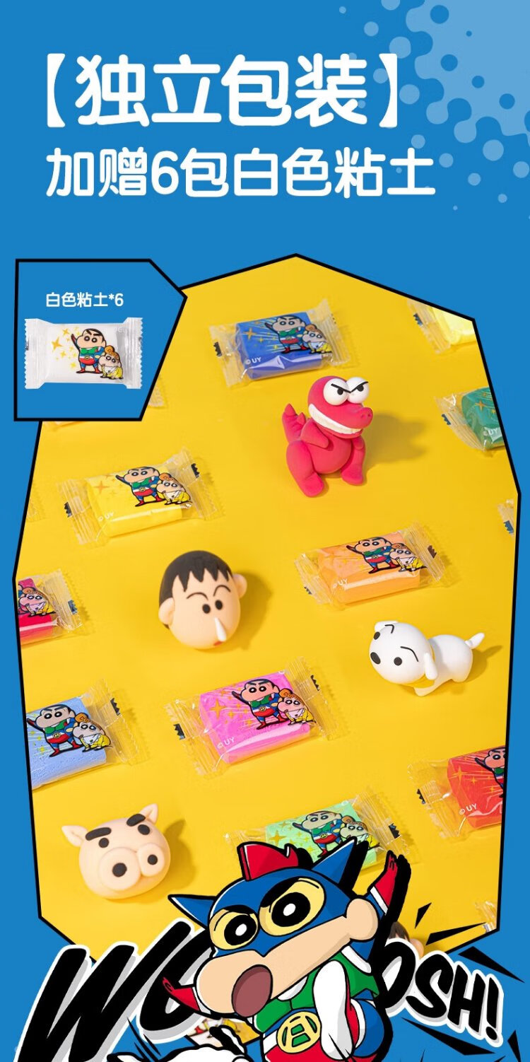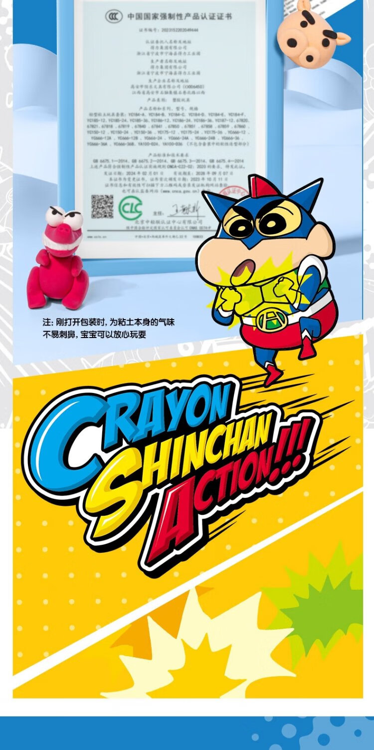 Deli Crayon Shin-chan 36 colors plus 6 packs of ultra-light clay, clay, plasticine and colored mud for kindergarten students DIY handmade toy bucket children's birthday gift