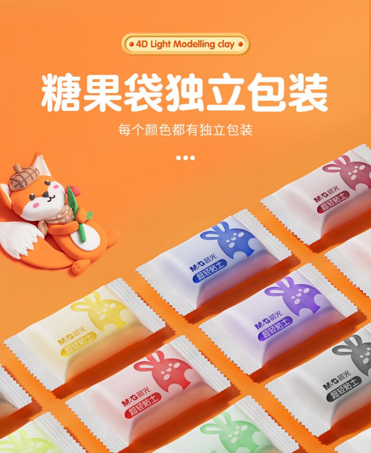 Morning Light (M&G) candy bag and bucket 24 colors + 6 bags 4D ultra-light clay children's super colored clay plasticine clay kindergarten primary school students handmade diy toys birthday school gift
