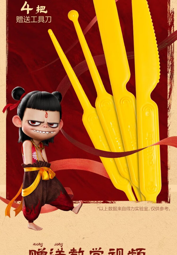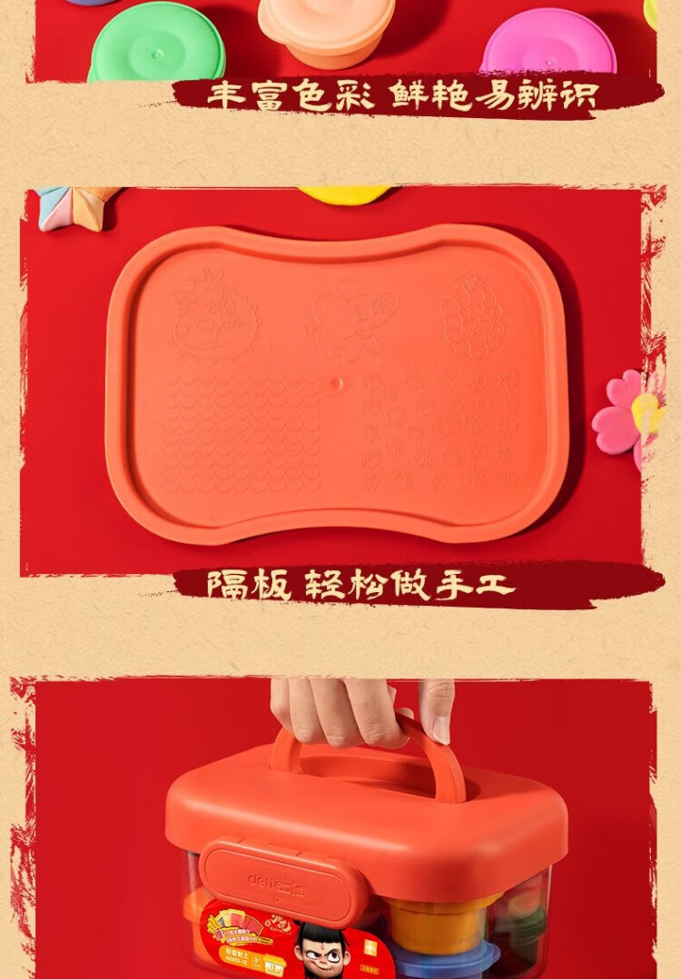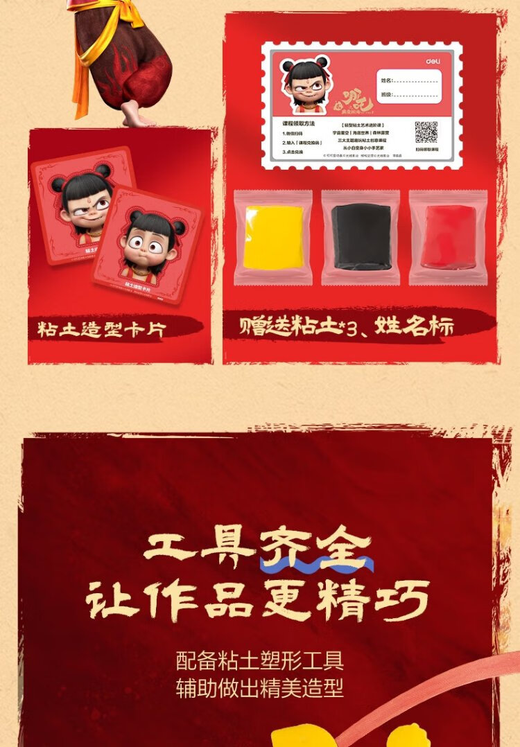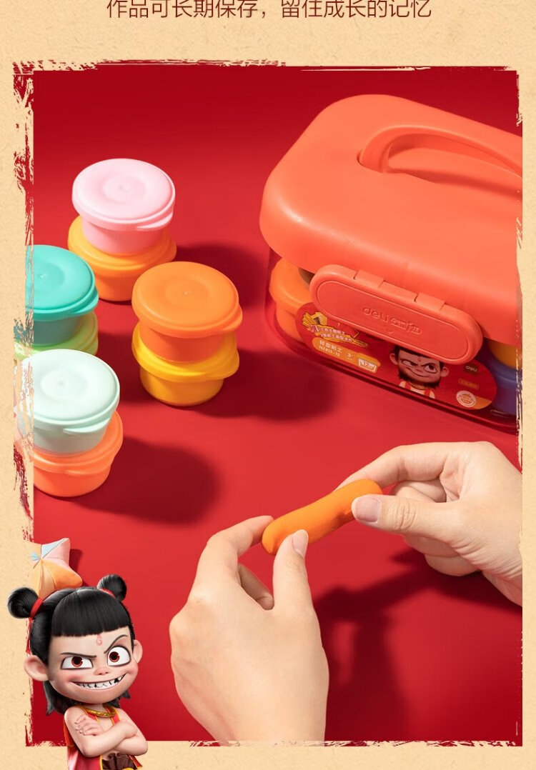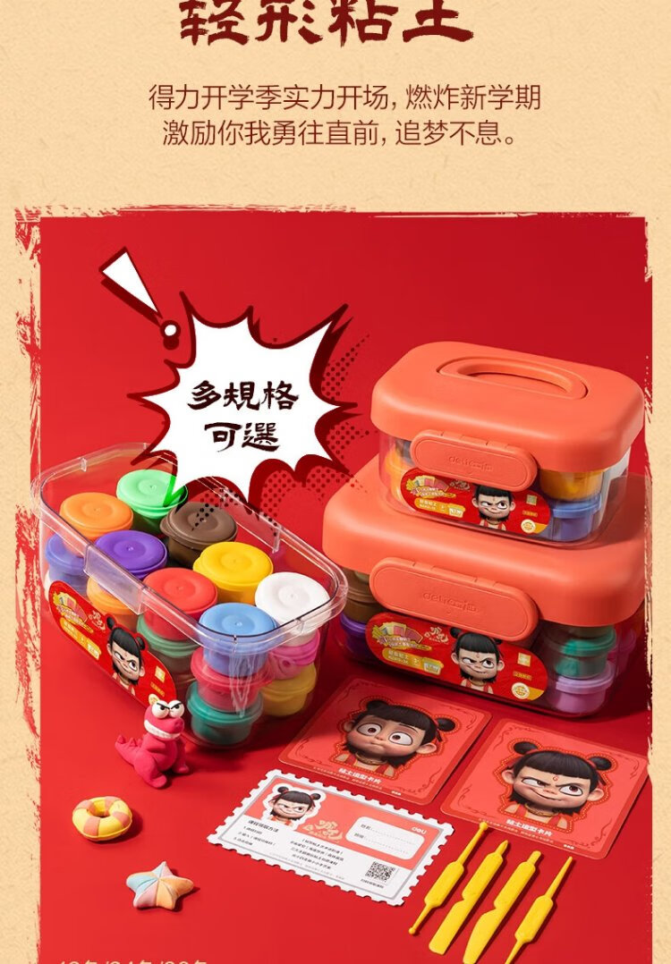 Deli Nezha's Demon Boy Naohai 12-color ultra-light clay colored clay DIY toy name sticker + full set of tools children's birthday school gift tool box plus 3 packs