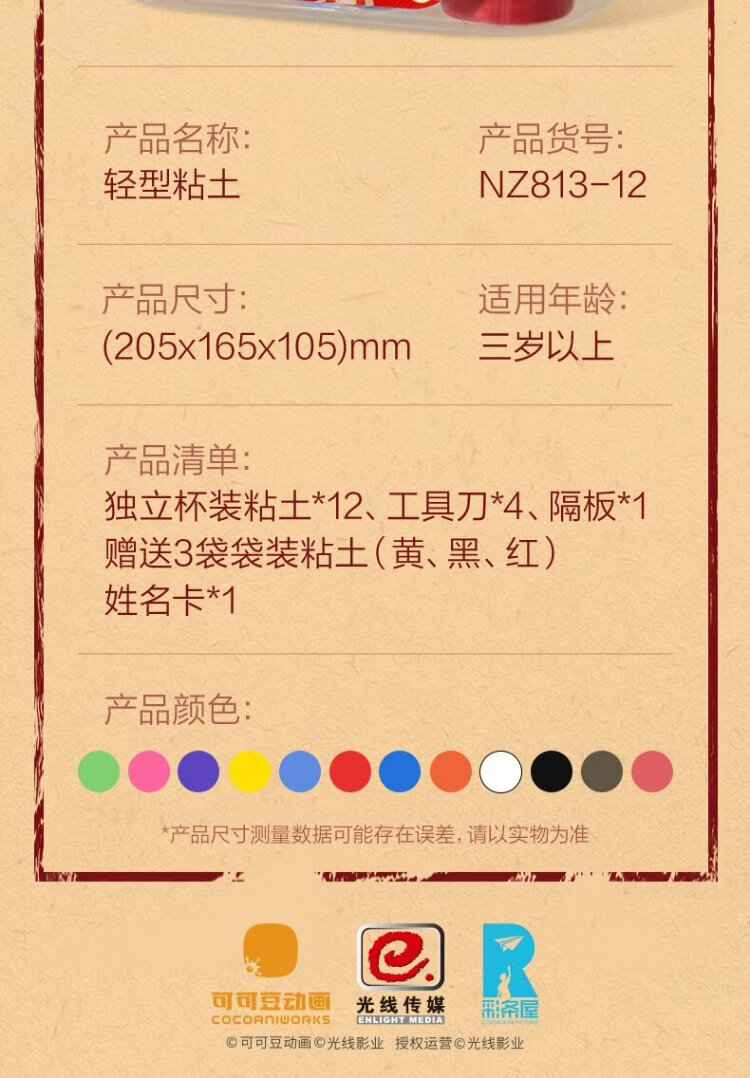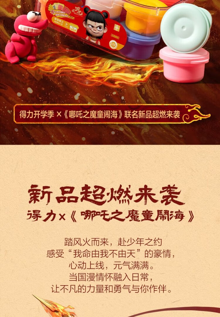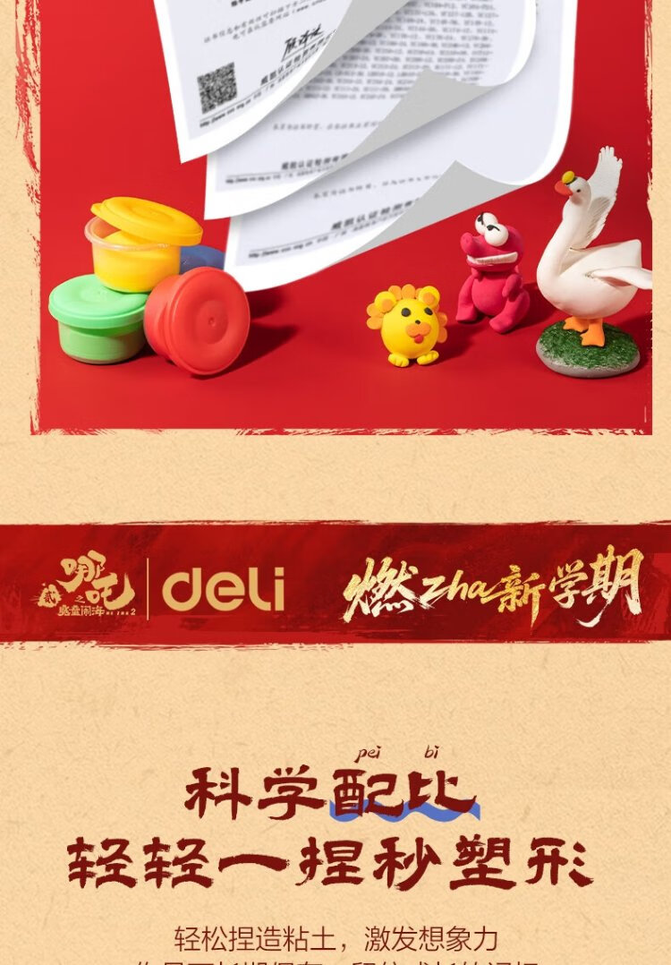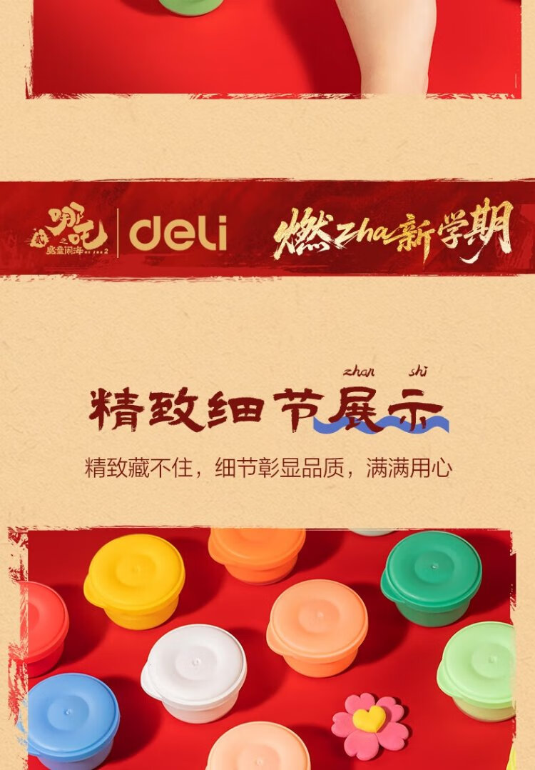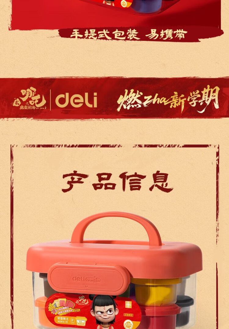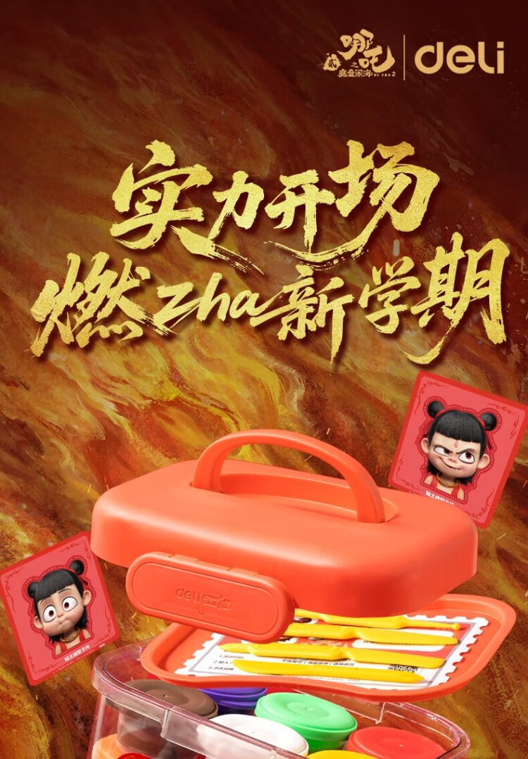 Deli Nezha's Demon Boy Naohai 12-color ultra-light clay colored clay DIY toy name sticker + full set of tools children's birthday school gift tool box plus 3 packs