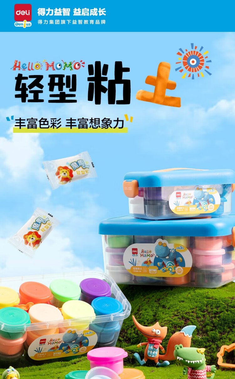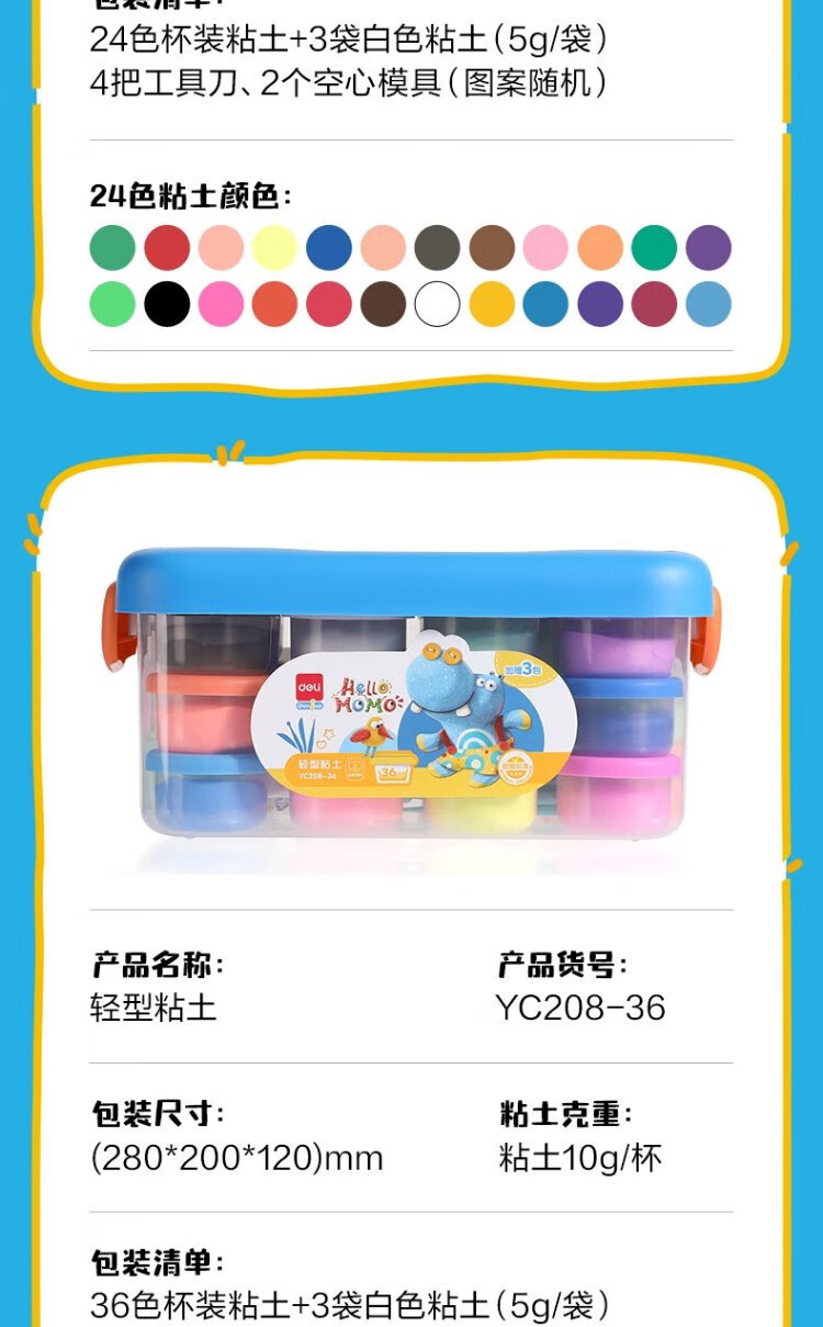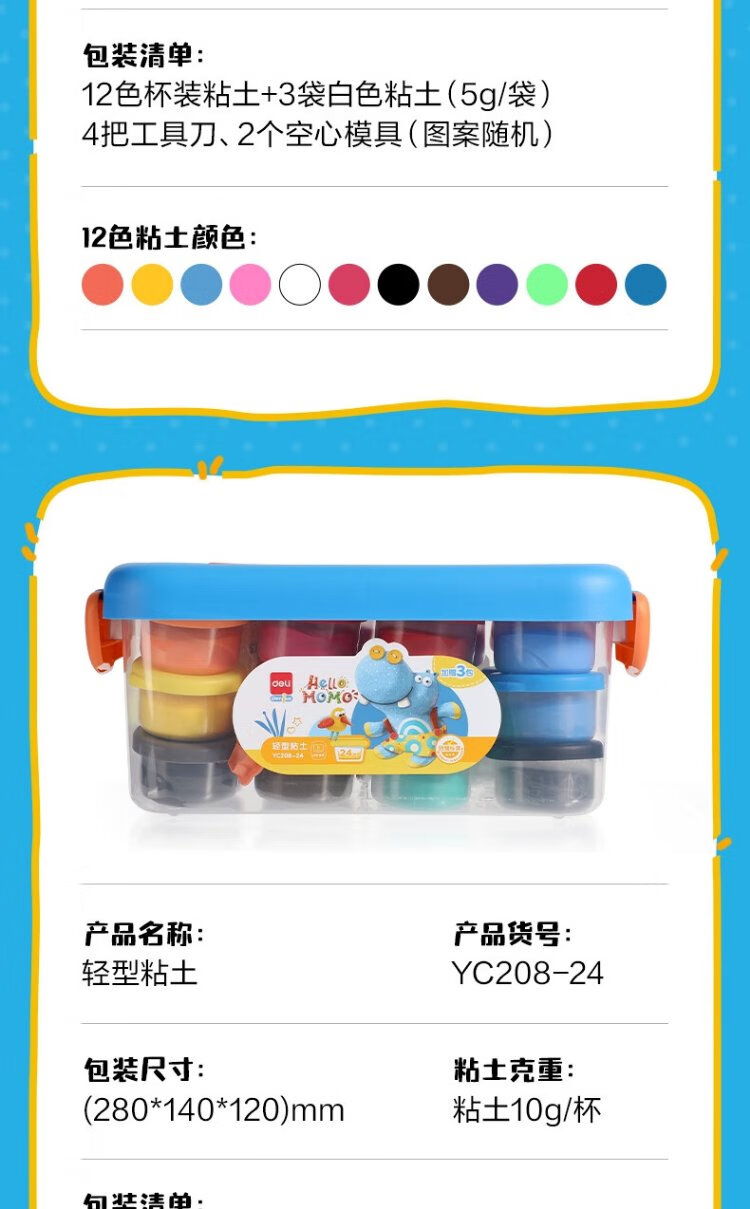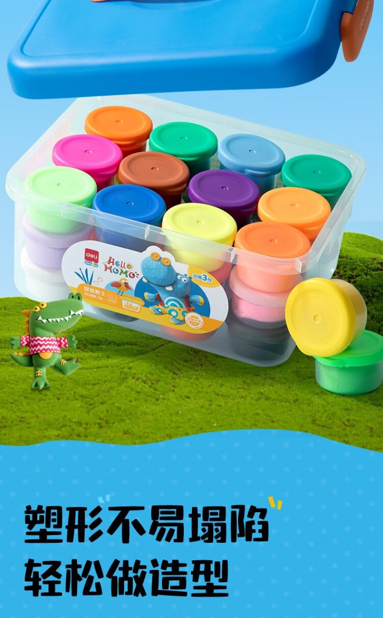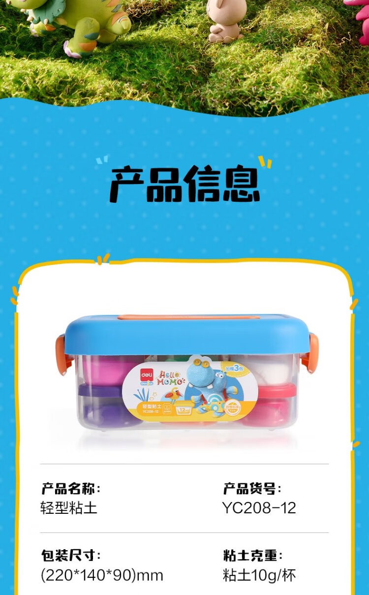 Deli Little Monster Toolbox Clay 12 colors ultra-light clay colored clay plasticine clay handmade DIY art toy accessories children's first day of school Children's Day gift