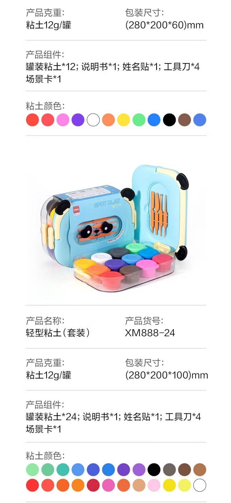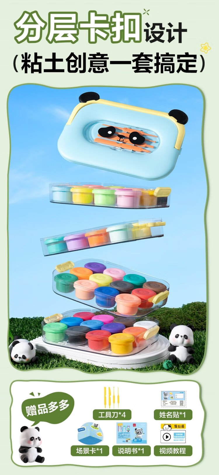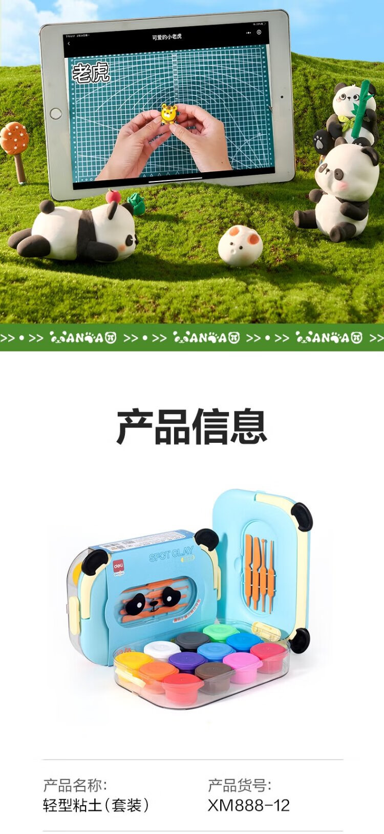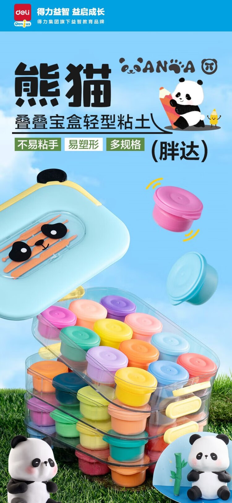 Deli Panda 12-color ultra-light clay stacking tool box clay colored clay plasticine art handmade DIY toys space sand birthday children's day graduation children's day school gift