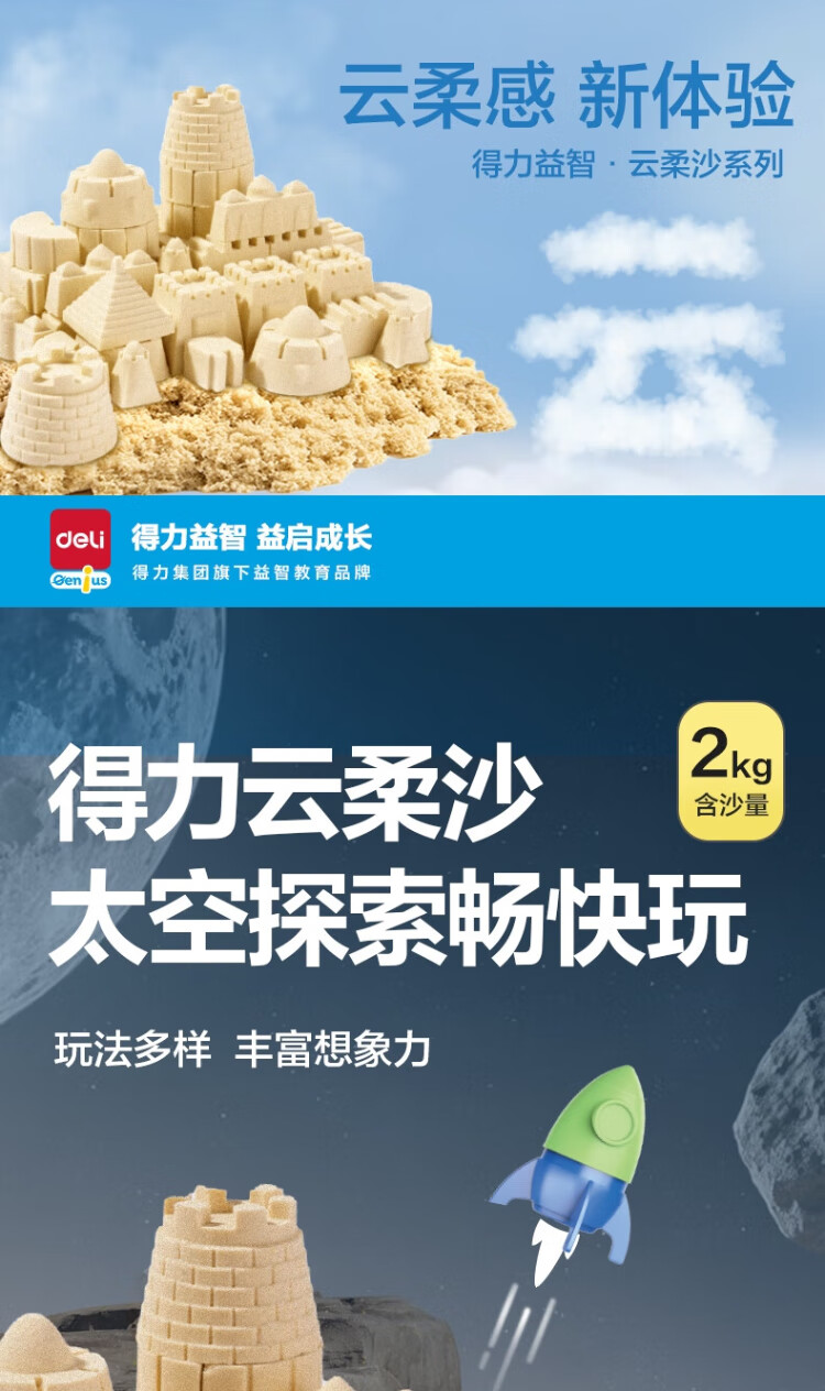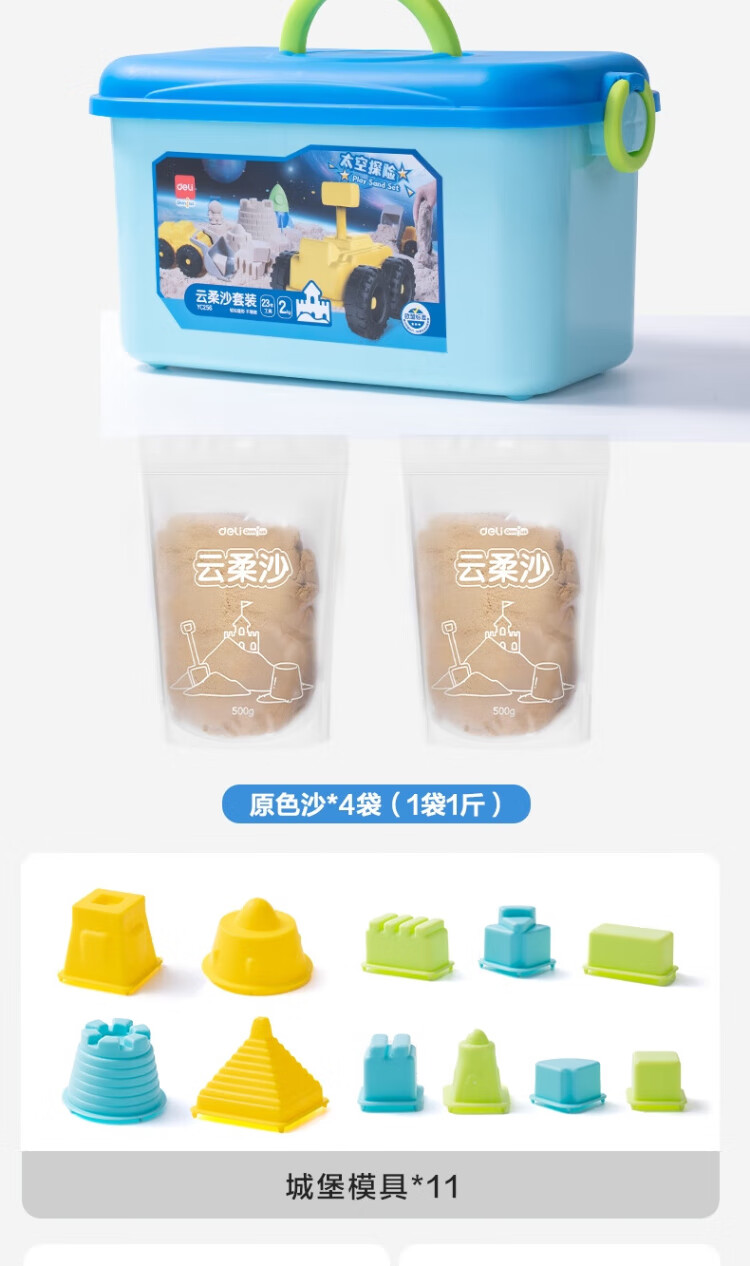 Deli 2kg Cloud Soft Suitcase Set Sand Toy Clay Color Mud Student Space Star Sand Storage Toolbox Children's Birthday School Gift Space Adventure Theme