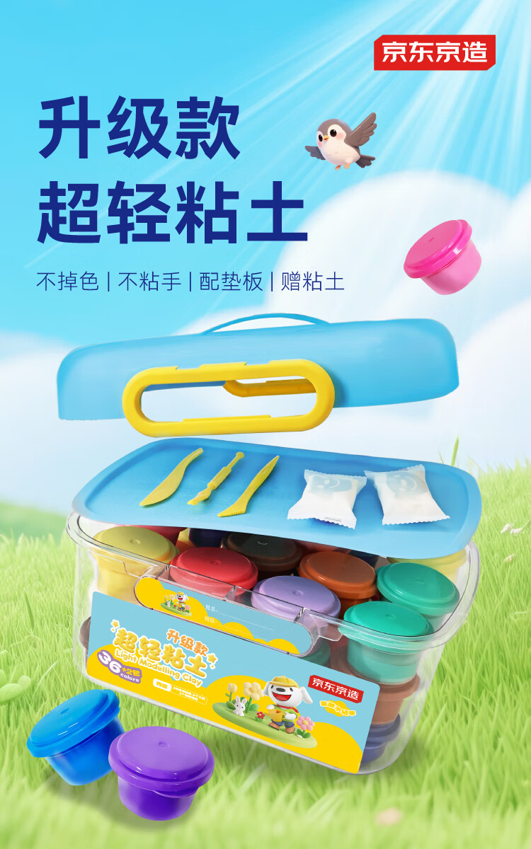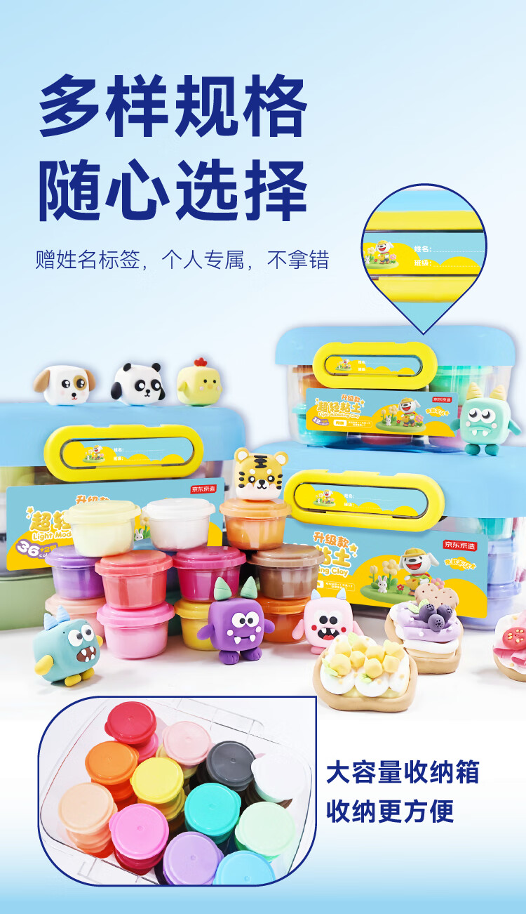 36-color ultra-light clay box made in Jingdong, colored clay, clay handmade DIY art toys, with name stickers + full set of tools + video tutorials children's birthday and school gifts