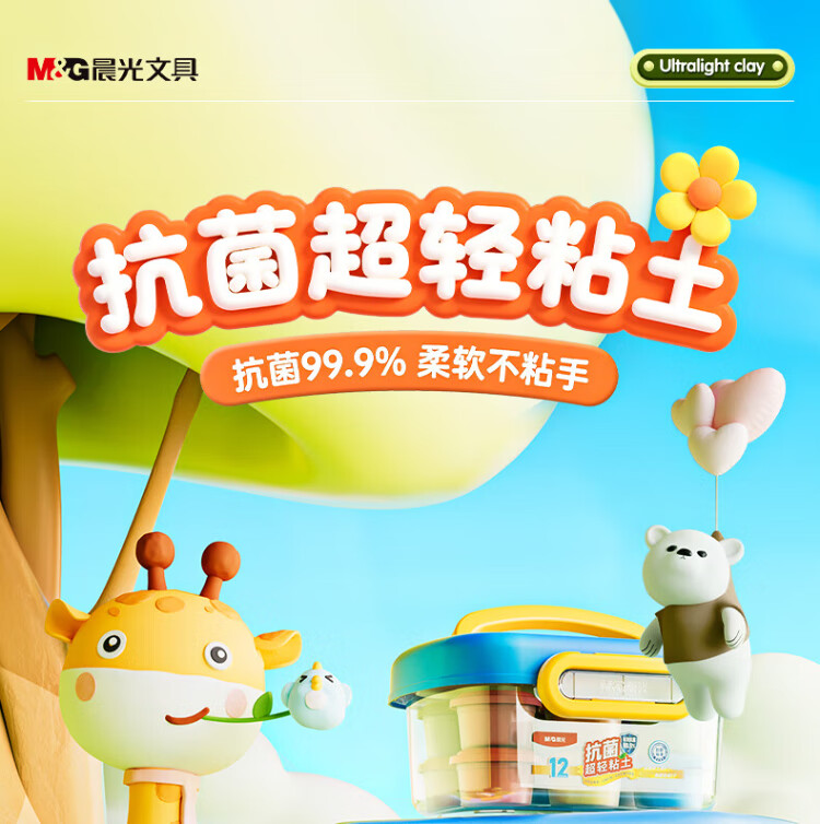 M&G antibacterial series boxed 12-color ultra-light clay upgrade children's super colored clay plasticine clay kindergarten primary school students handmade diy toys birthday school gift
