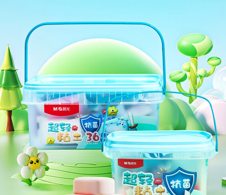 M&G antibacterial series barreled 24 colors + 6 bags of ultra-light clay, children's super color clay, non-toxic plasticine clay, kindergarten primary school students' handmade DIY toys, birthday and school gifts