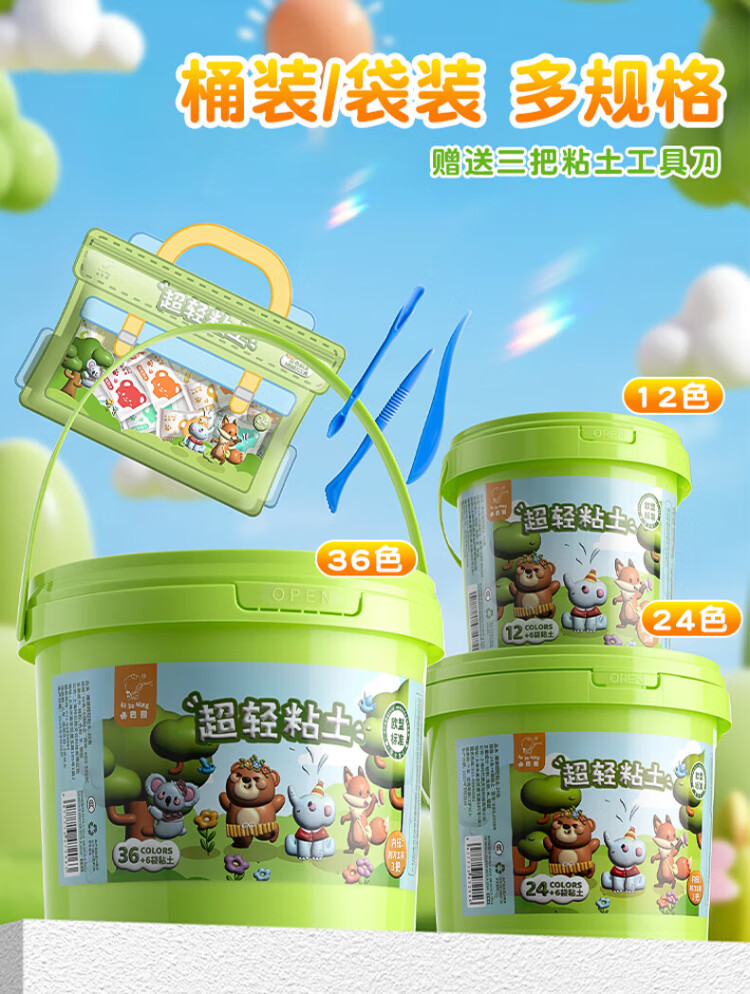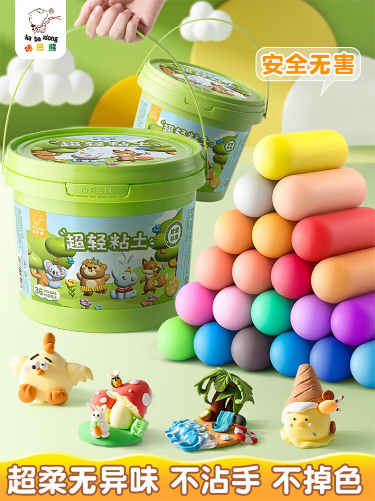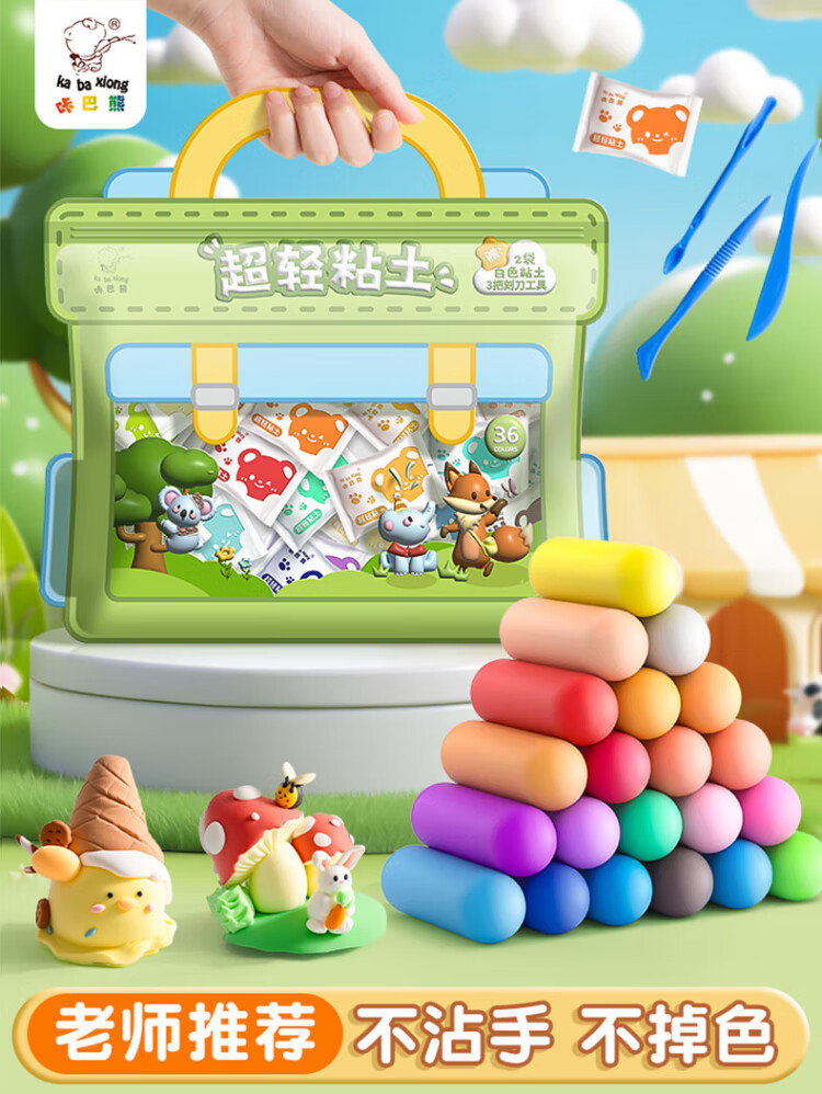 Kaba Bear 12-color bagged ultra-light clay, student colored clay, safe and odor-free clay set, children's handmade DIY toys, 12 colors