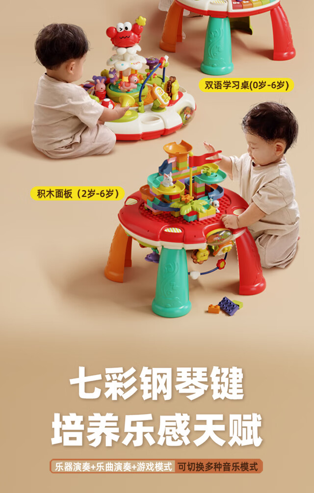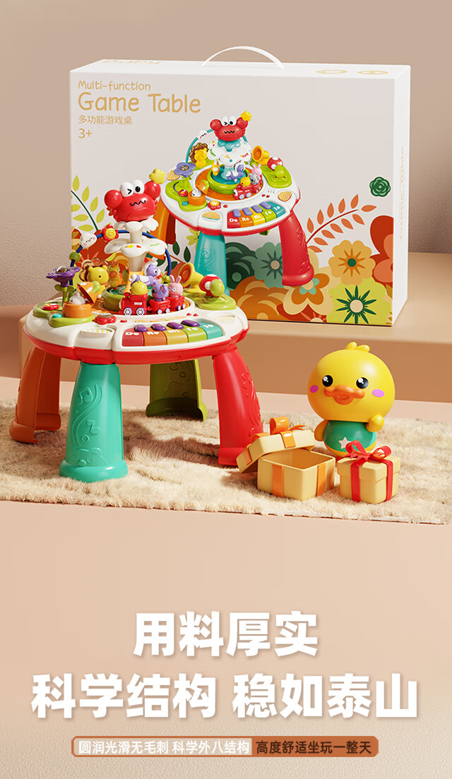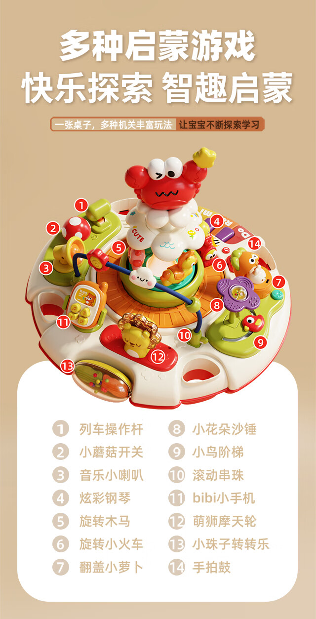 Ao Zhijia children's toys 1-3 years old multi-functional game table infant and toddler early education educational polyhedral hand drum one-year gift