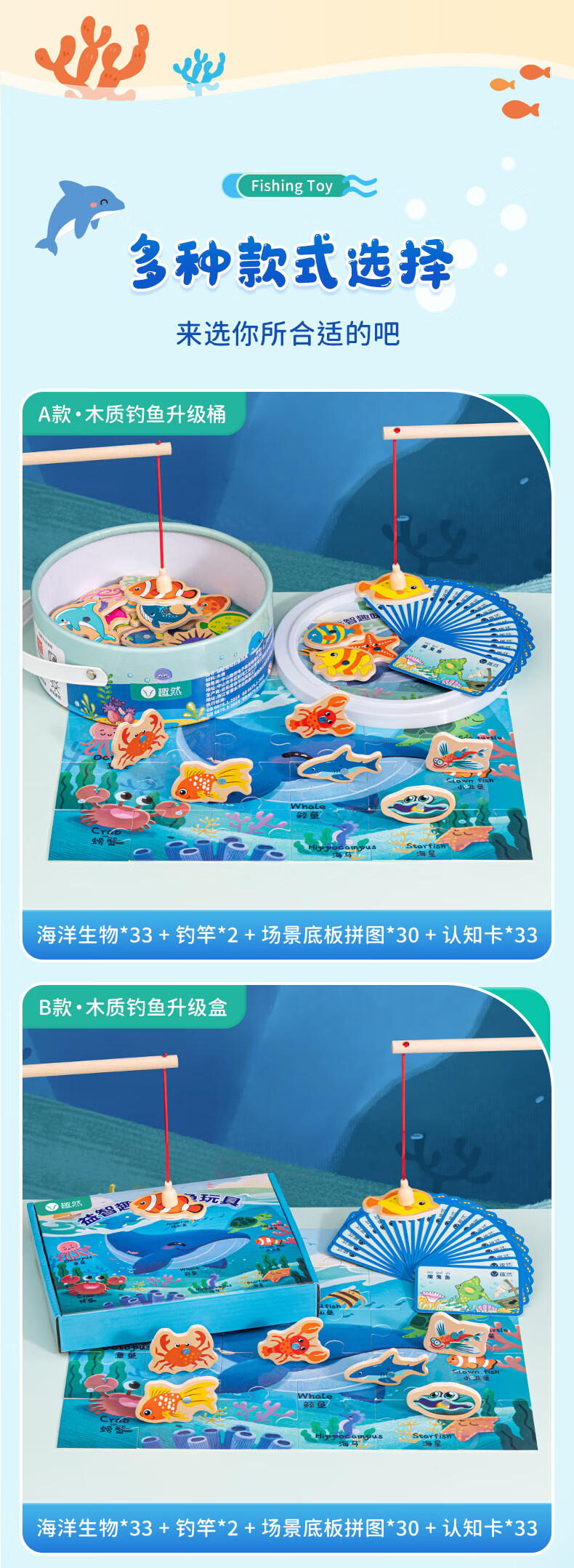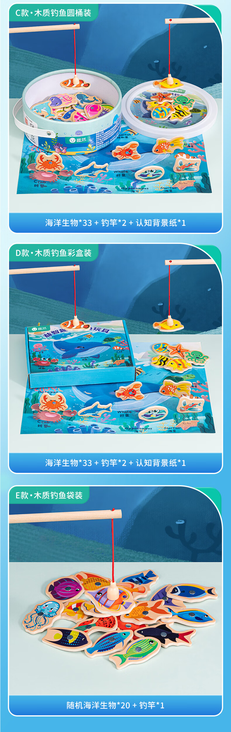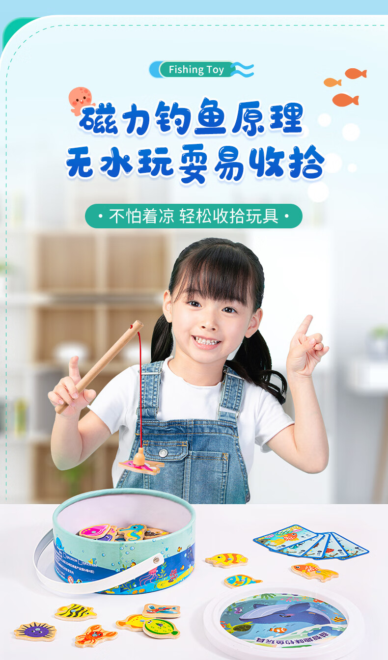 Dianmai fishing toys magnetic small fish wooden children 1 to 3 years old, 2 and a half years old, 6-power children, toddlers, boys and girls, magnetic fishing rod*1