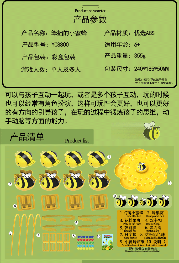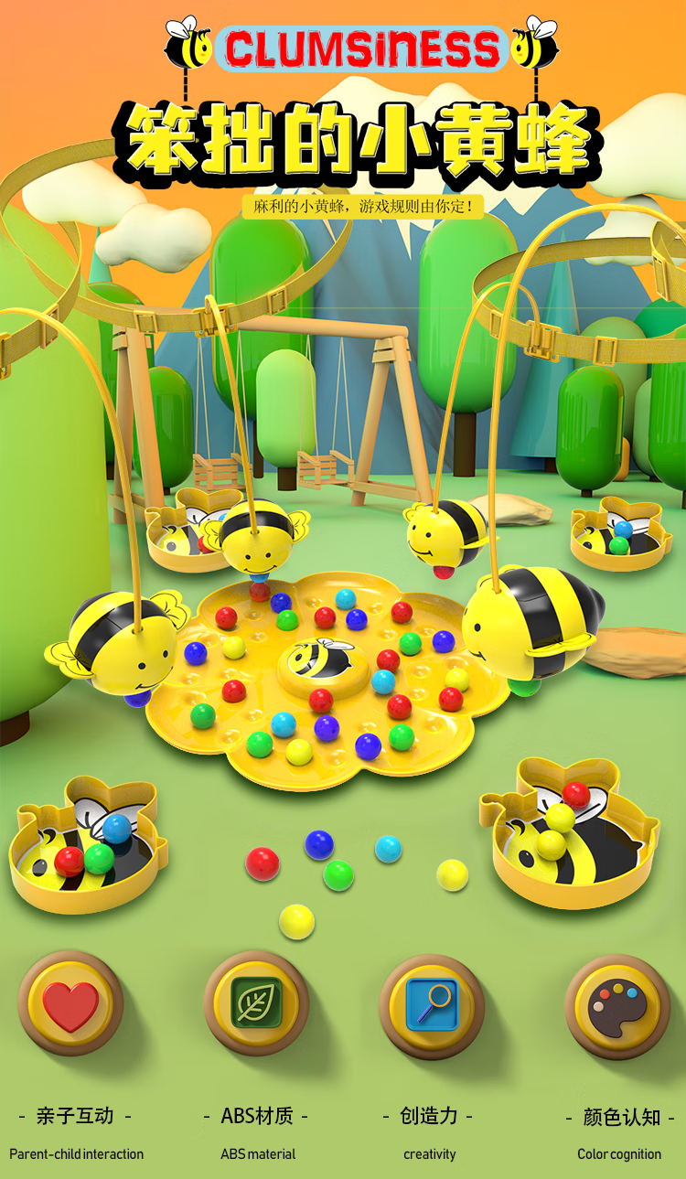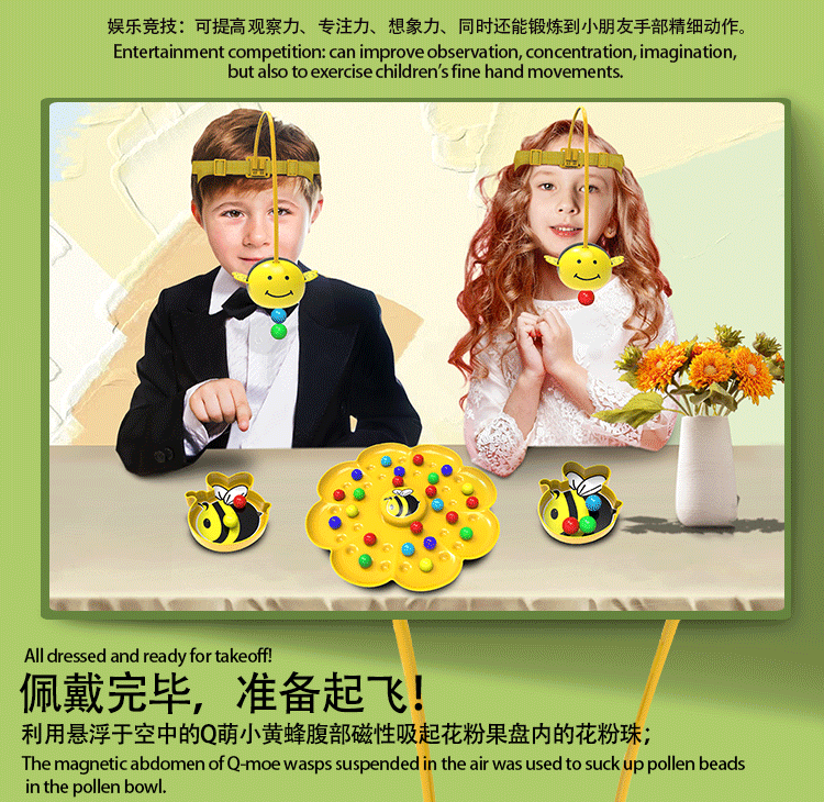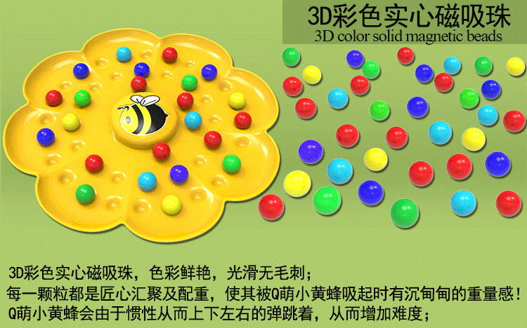 Little bee collecting nectar magnetic beads children's fishing toy 4 years old and above parent-child interactive early education for boys and girls Hard-working little bee collecting nectar game package for four