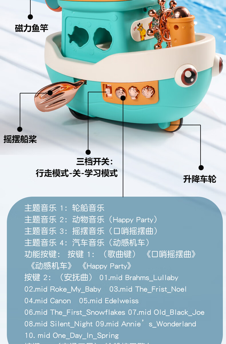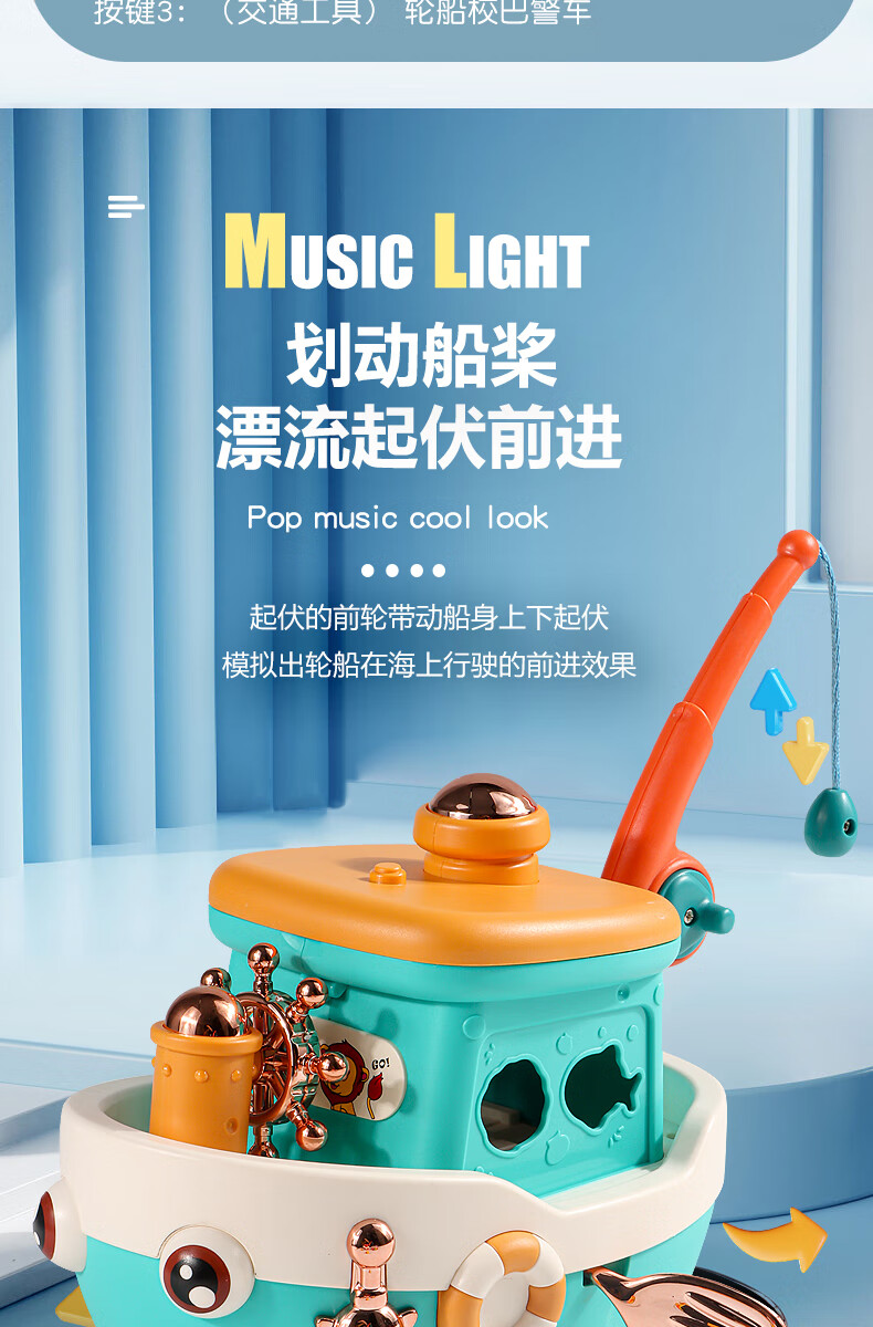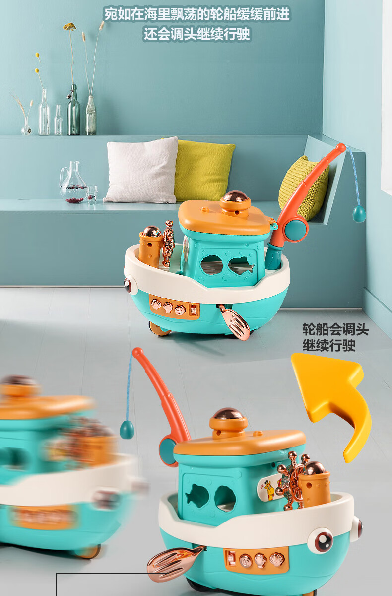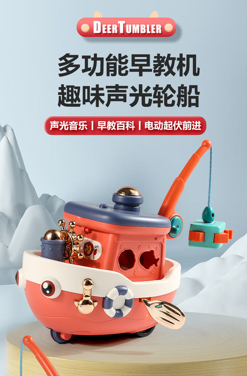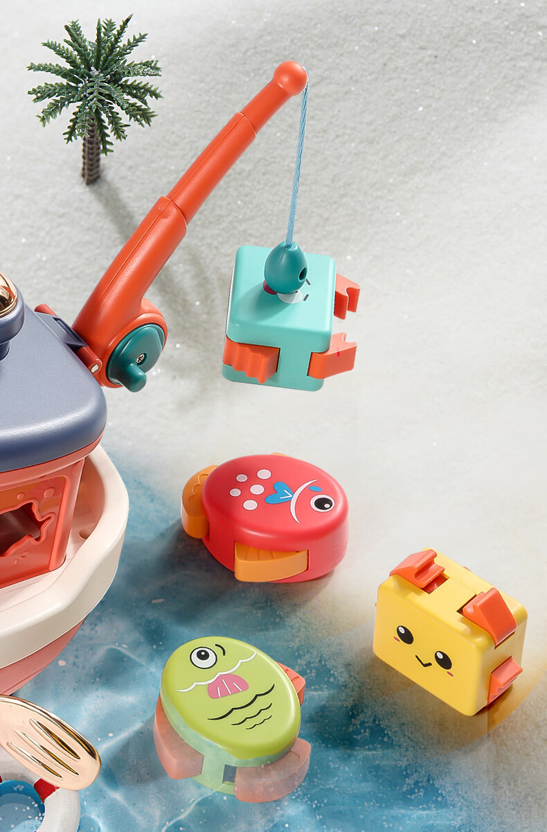 QISEN Children's Fishing Magnetic Toy Electric Universal Boat Toddler Puzzle 1 to 3 Years Old 6 Female Baby One Year Old Gift Boy Multi-Function Fishing Boat Red 9914C 3 Sections No. 5 Charging + Screwdriver