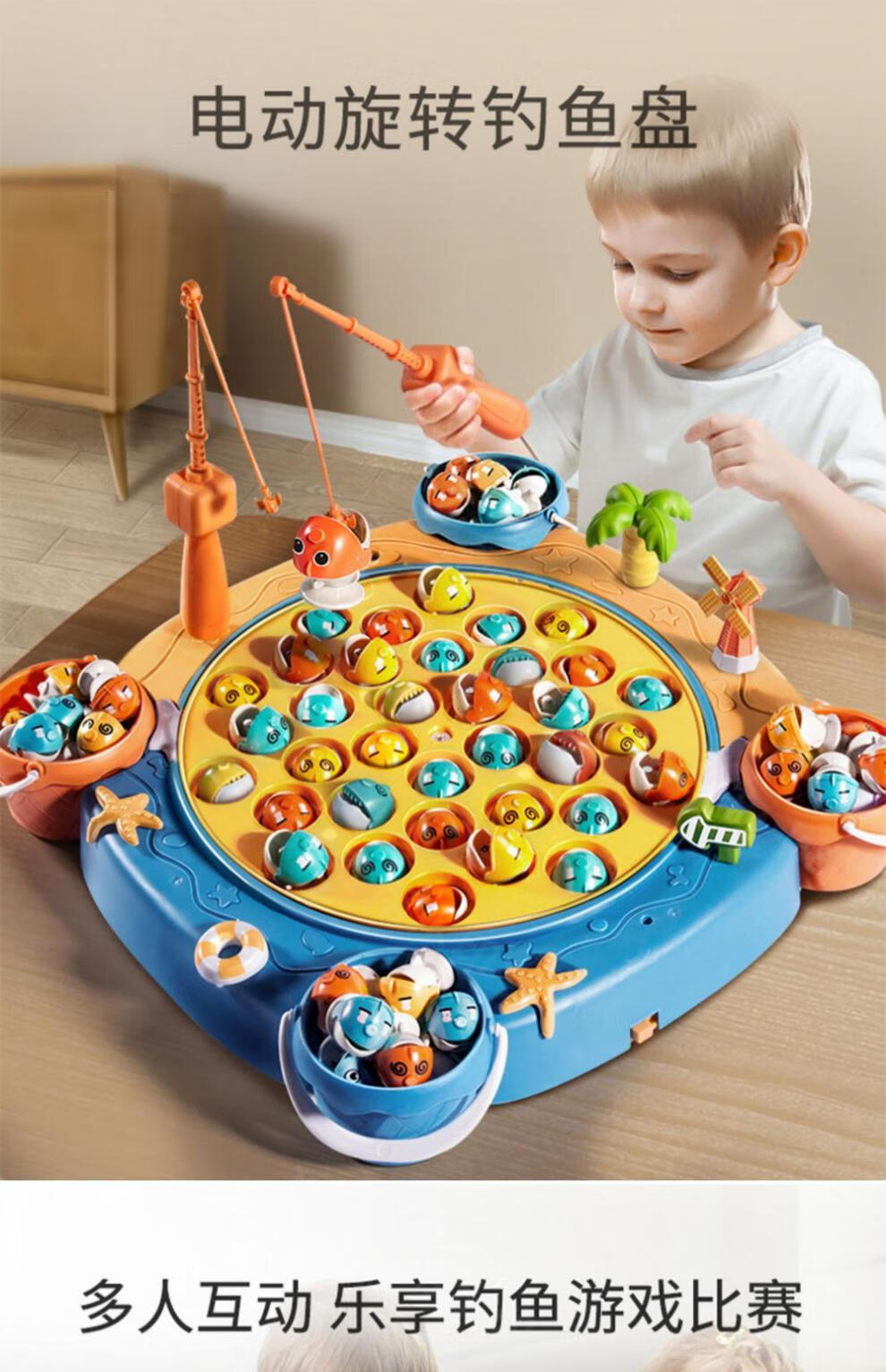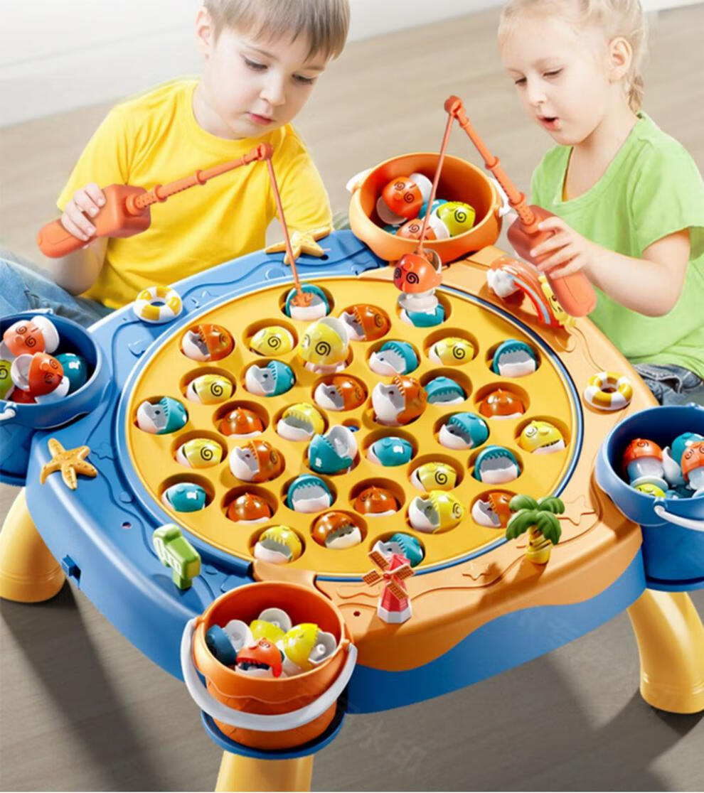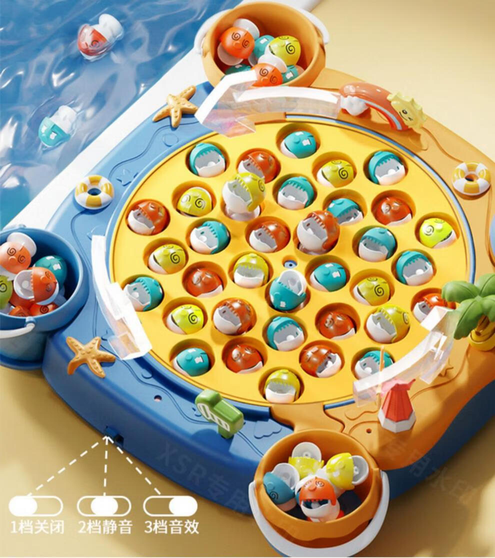 Jingxiong baby electric magnetic fishing toys for children 1 to 2 years old, 3 children, two weeks and a half, three boys, 6 girls, toddlers, blue 31 magnetic fish + 4 barrels + 8 poles + 4 three-dimensional scenes