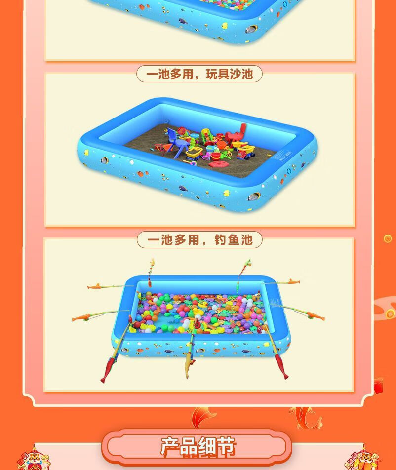 Children's fishing pond magnetic toy set square park stall fishing pool shopping mall inflatable fish pond 3 meters standard package