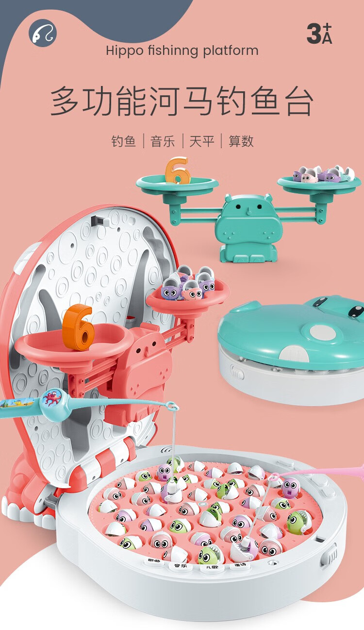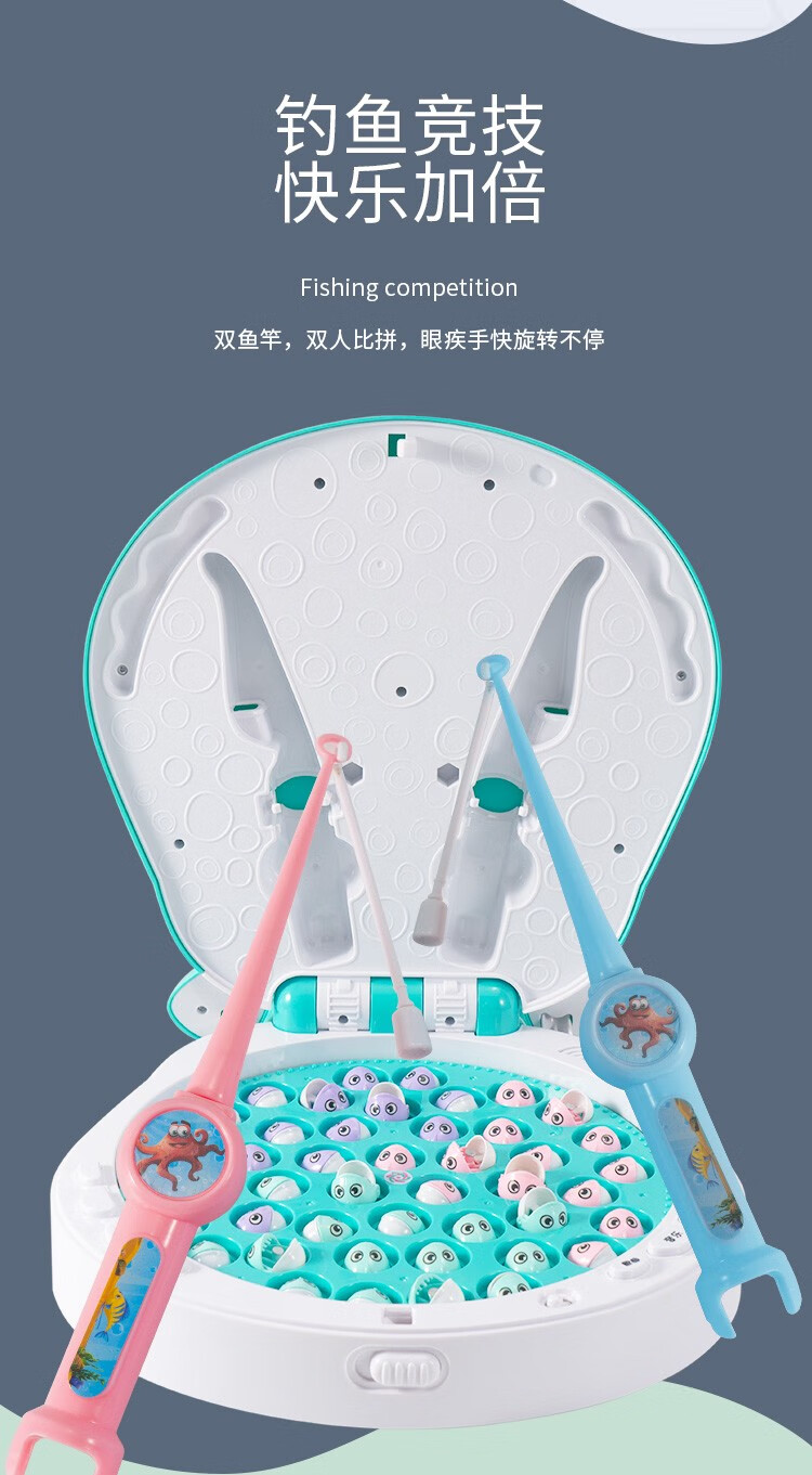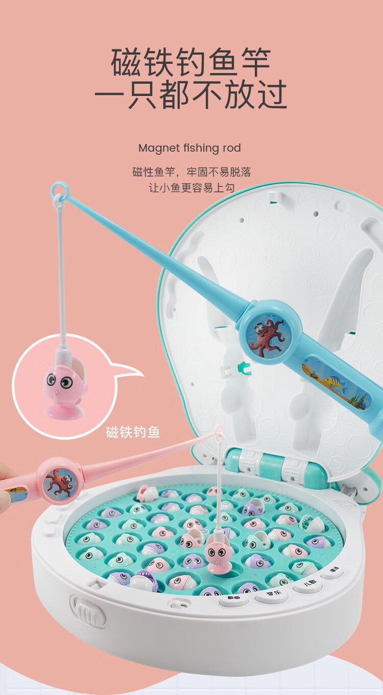 Fishing toys for children electric rotating baby one year old 1 girl 2 boys 2 boys 3 to 6 girls toddler small magnetic fishing set pink 45 fish battery version