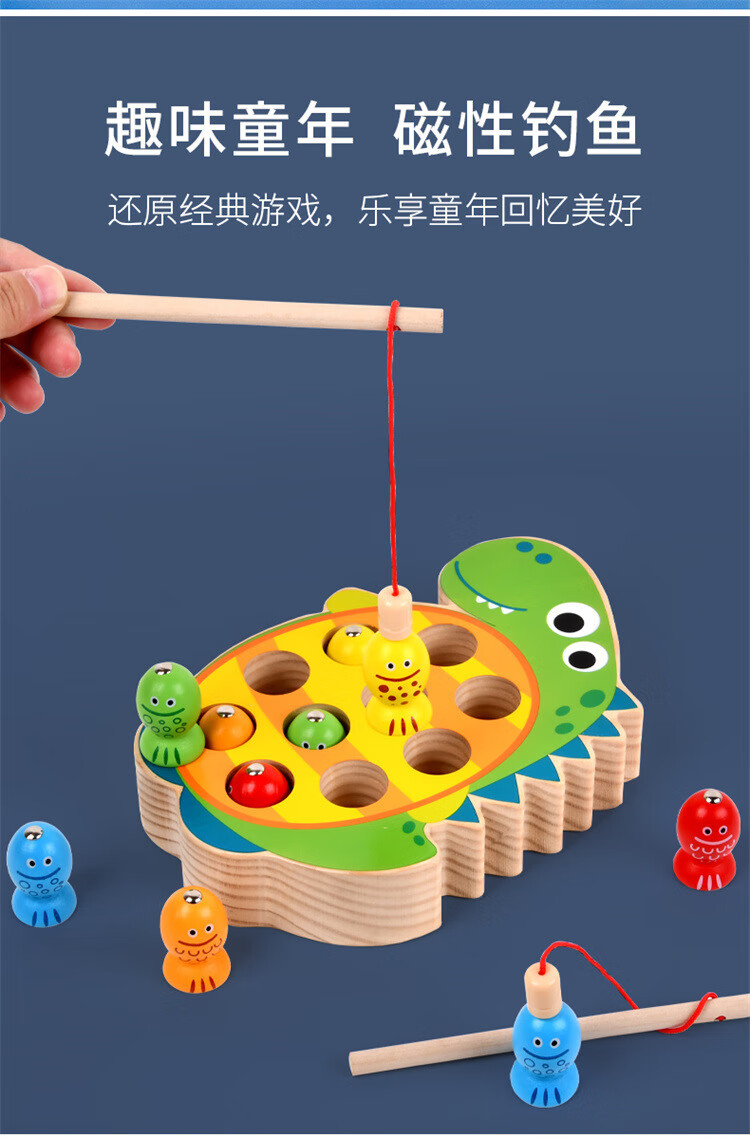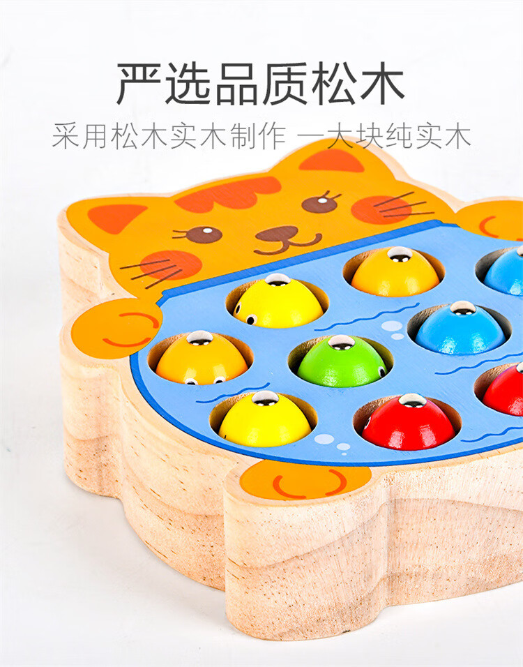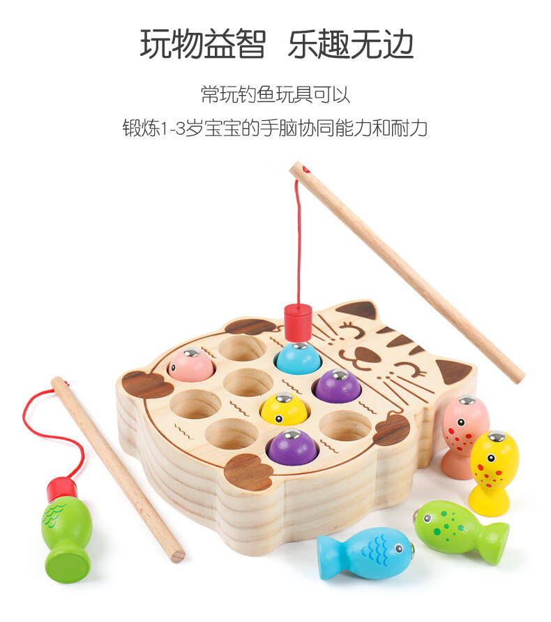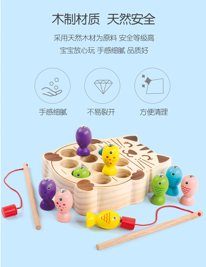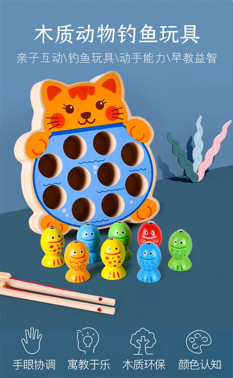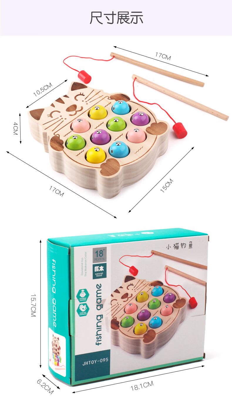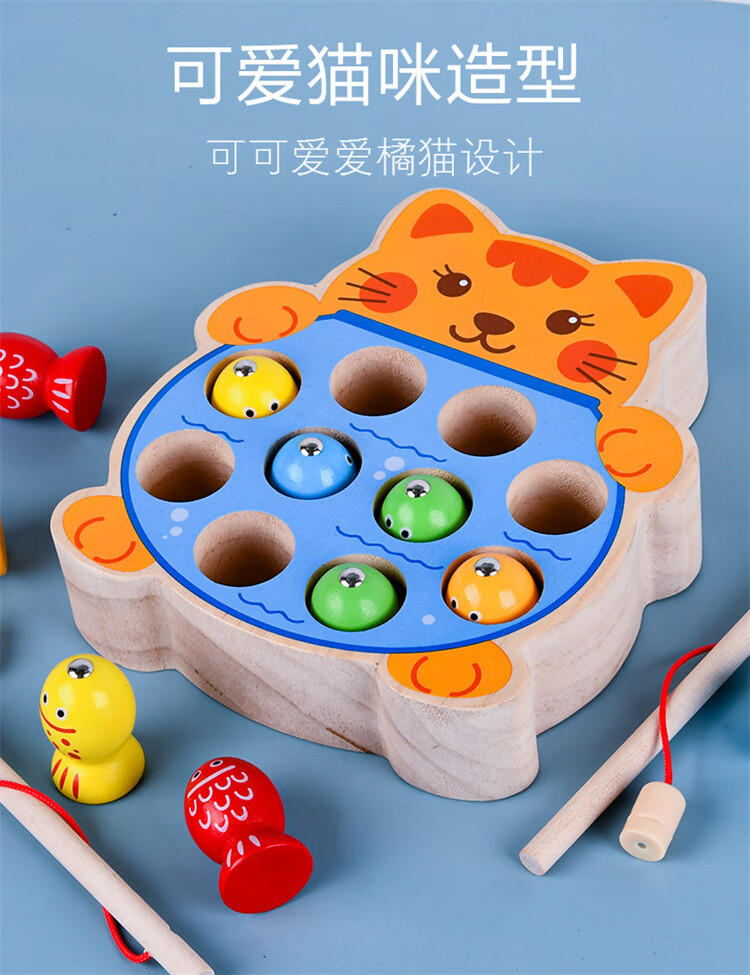 Children's Wooden Toy Magnetic Fishing Baby Baby Infant Concentration Training Early Education Enlightenment Child Birthday Gift Cute Cat Fishing MLD-4