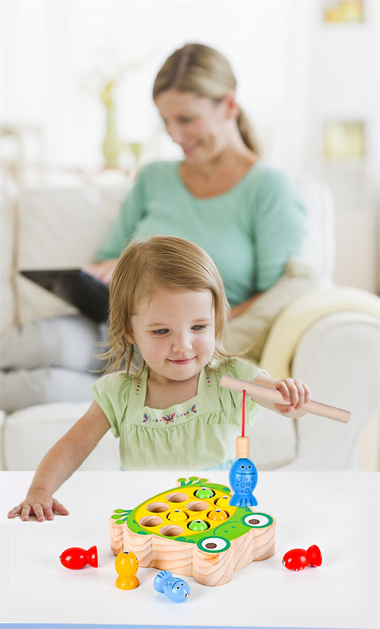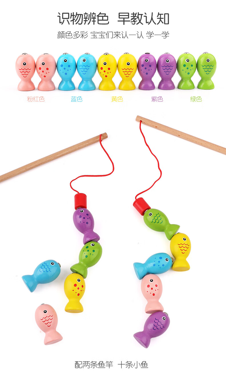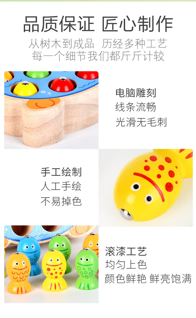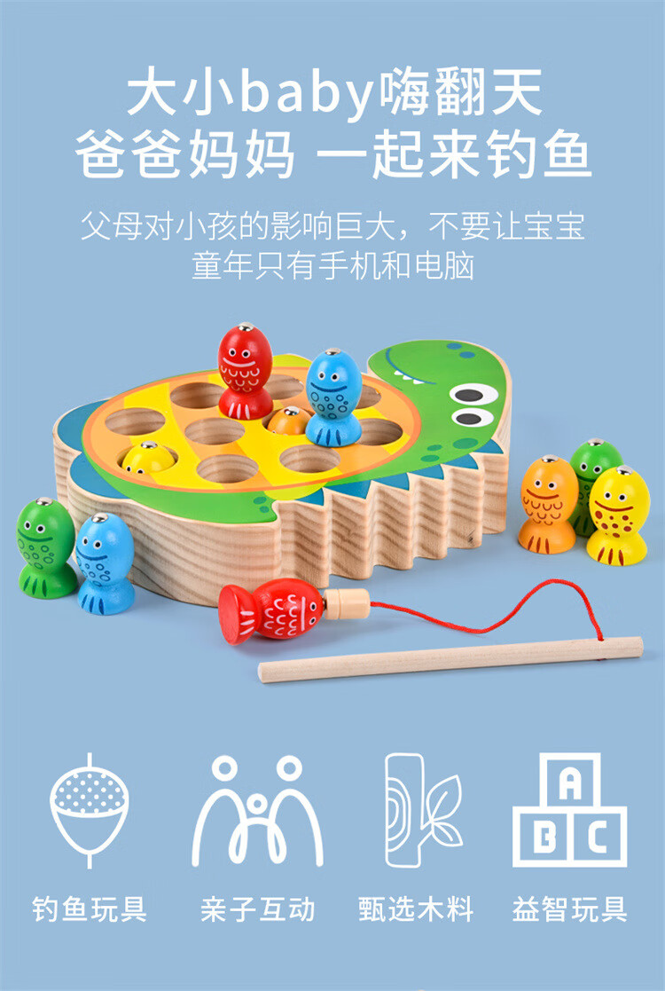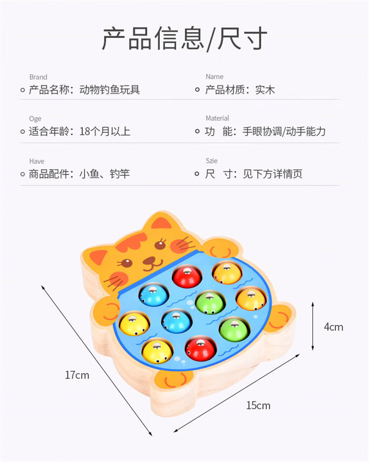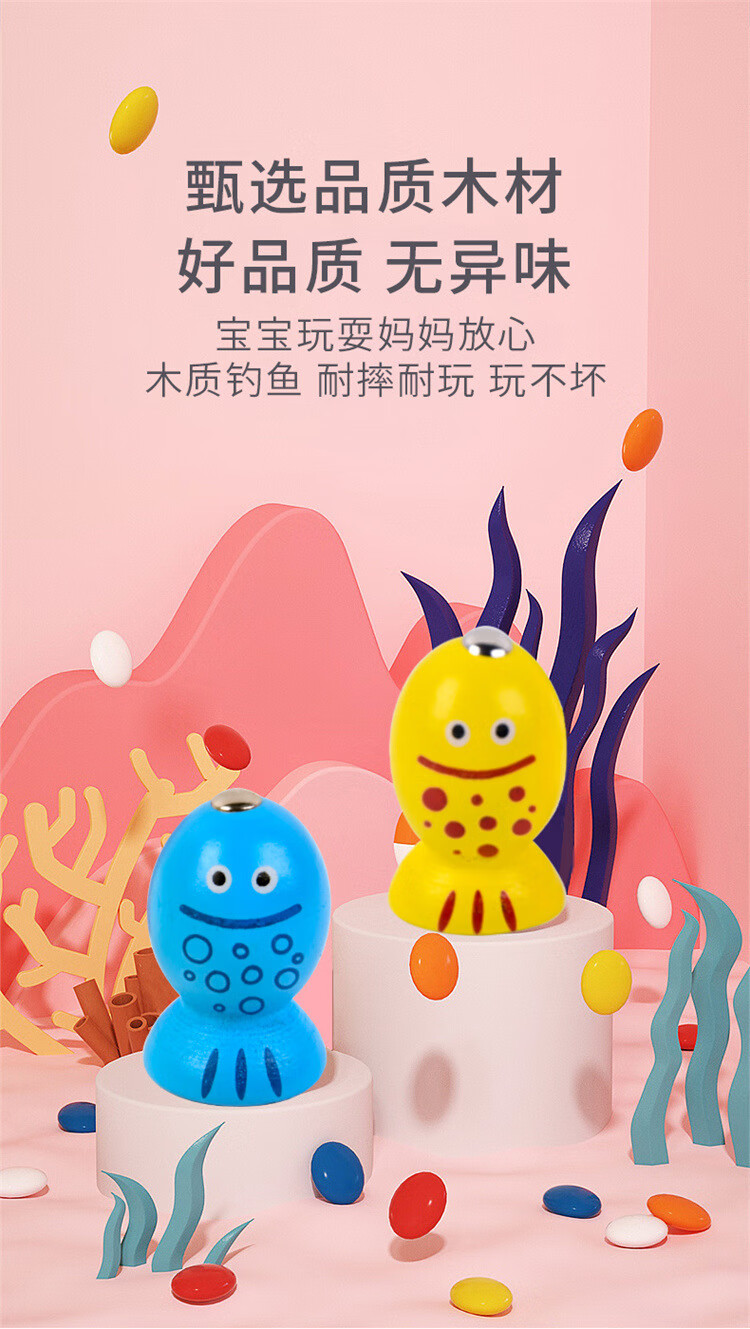 Children's Wooden Toy Magnetic Fishing Baby Baby Infant Concentration Training Early Education Enlightenment Child Birthday Gift Cute Cat Fishing MLD-4