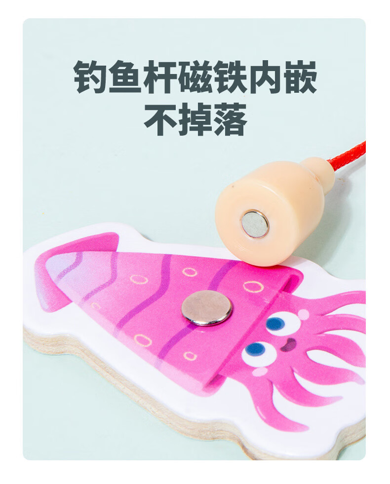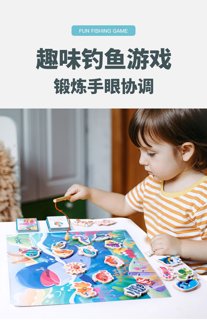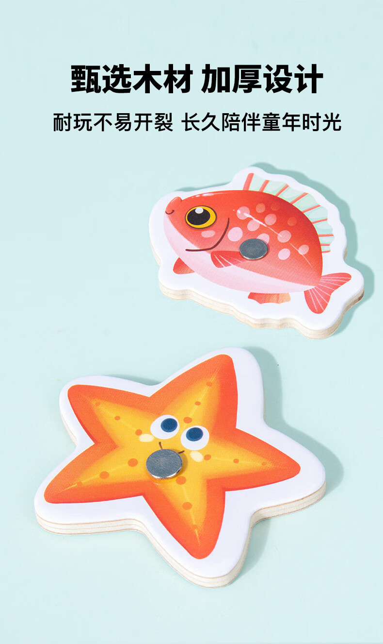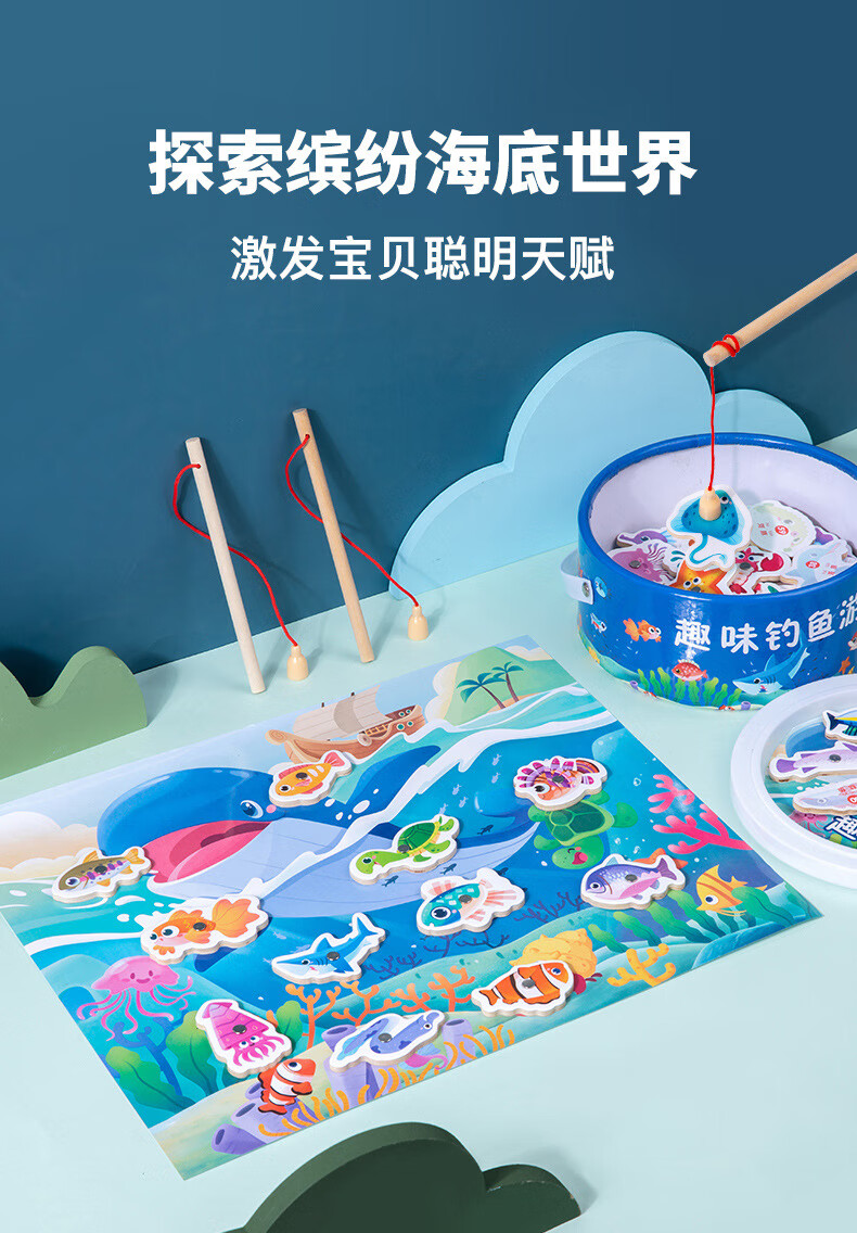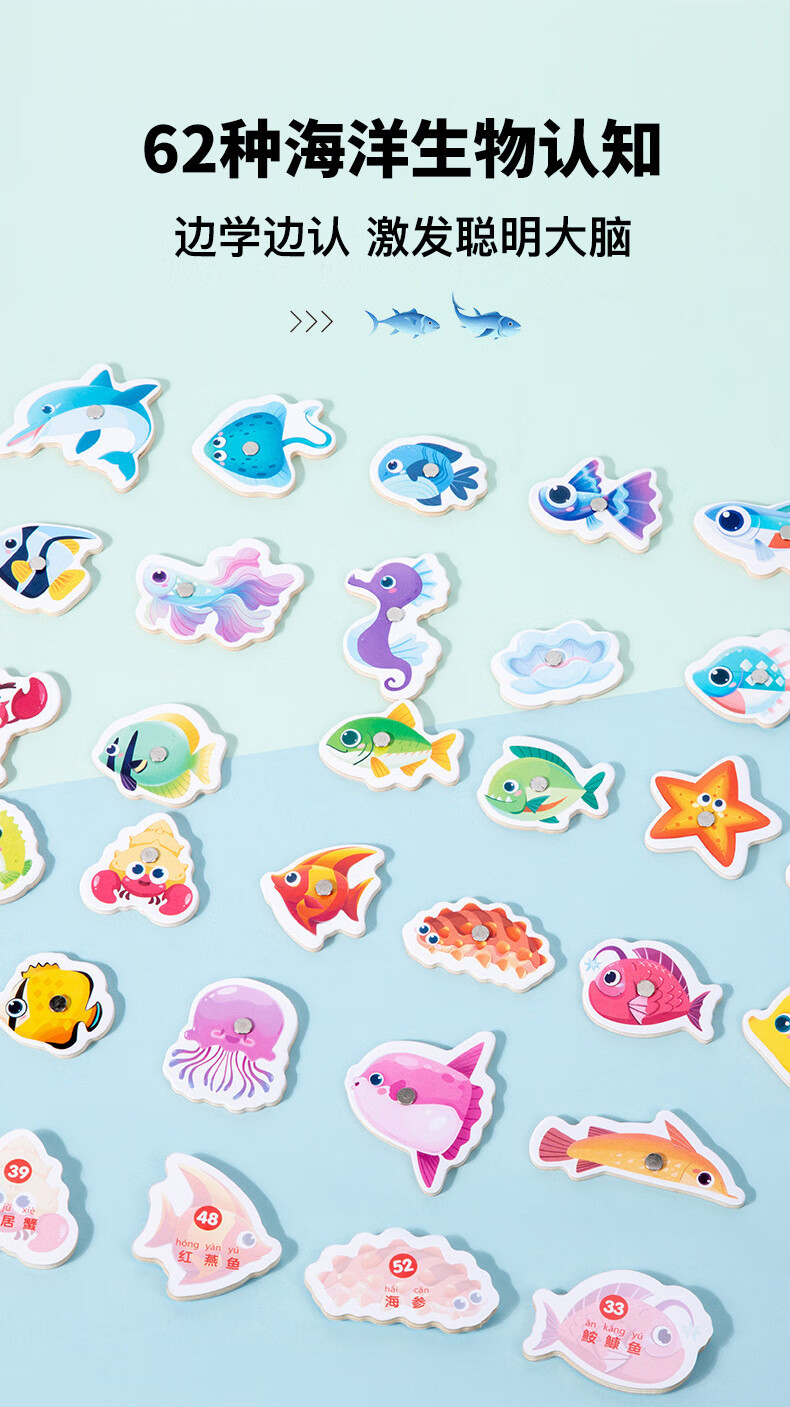 Shantou Lincun magnetic fishing toy for children aged 1 to 3 years old, brain development educational toy for baby two and a half years old, double-sided A type - 31 fish + 2 rods + scene picture + color box