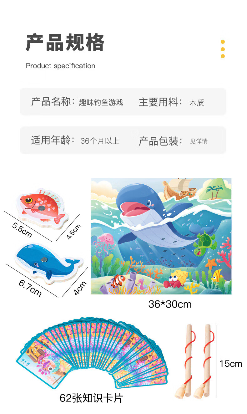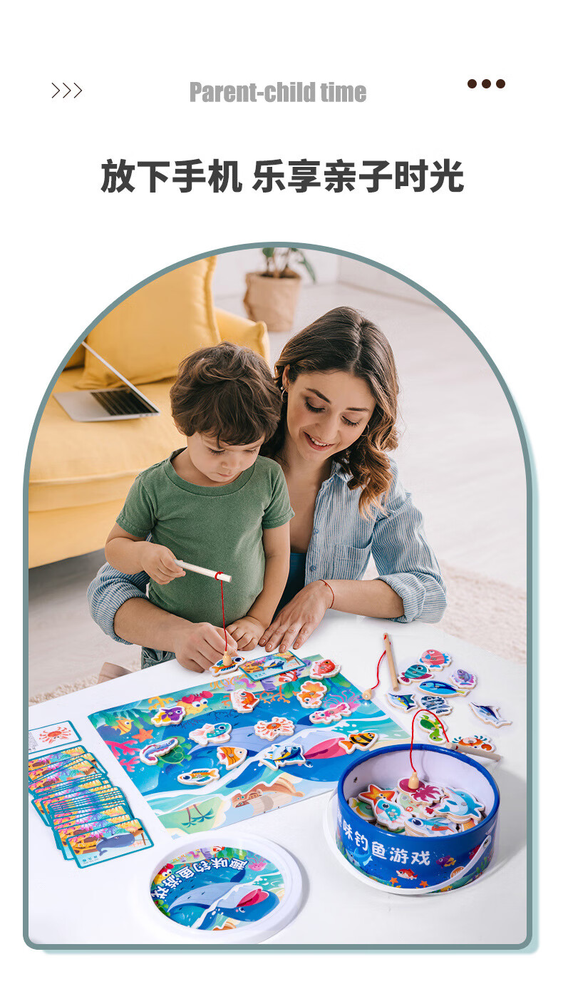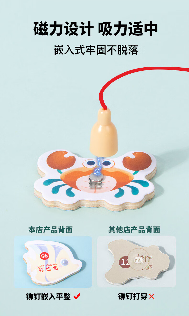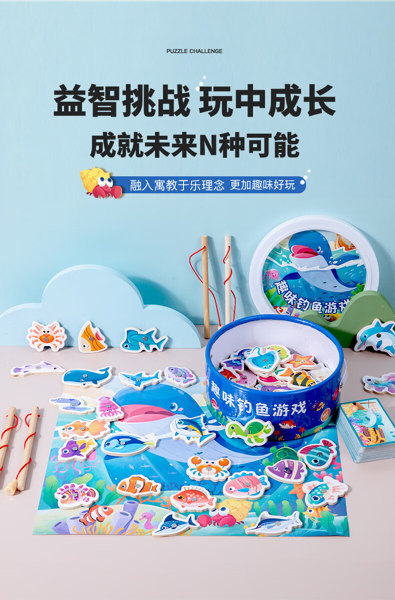 Shantou Lincun magnetic fishing toy for children aged 1 to 3 years old, brain development educational toy for baby two and a half years old, double-sided A type - 31 fish + 2 rods + scene picture + color box