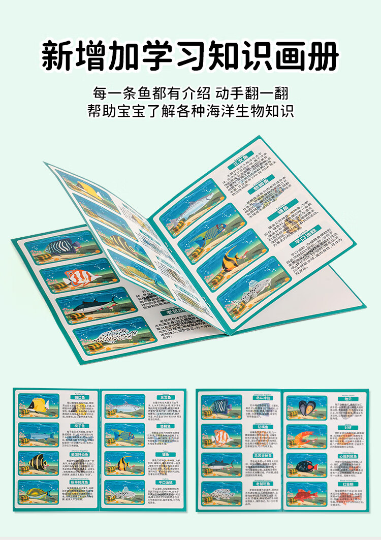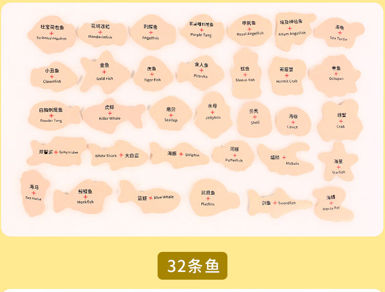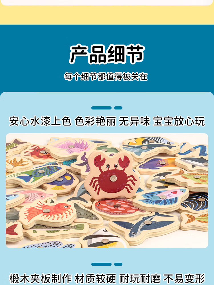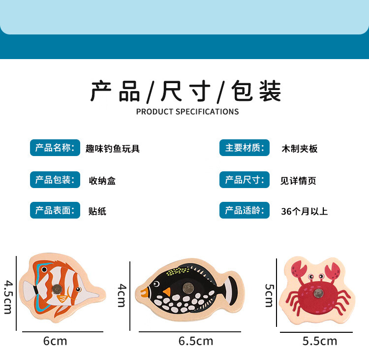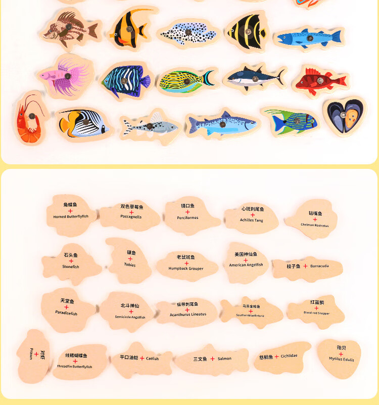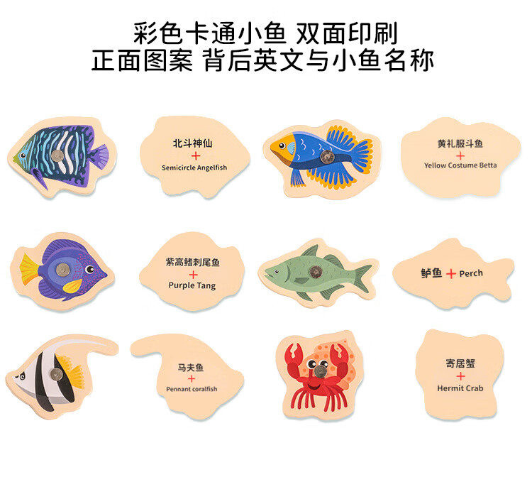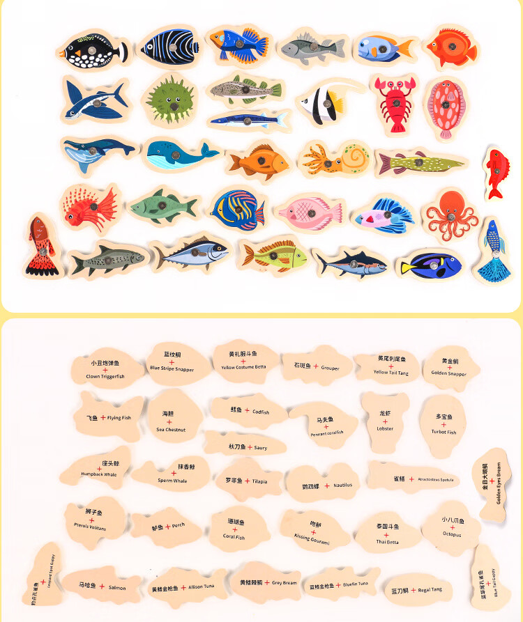 Childish fishing toys for children wooden baby magnetic small fish infant educational puzzle 1-2 years old 1 to 2 and a half years old 3 boys and girls barreled 33 fish + 2 fishing rods + fish pictures